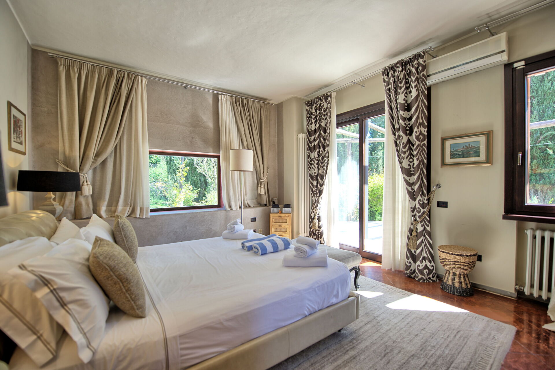 Feriehuset er det perfekte stedet å slappe av og koble av, med spektakulær utsikt over landskapet og San Gimignano, bare 4 km unna. Takket være de fem soverommene (fire i hovedhuset og ett i et anneks) kan du enkelt innkvartere opptil ti personer i elegante og raffinerte omgivelser.