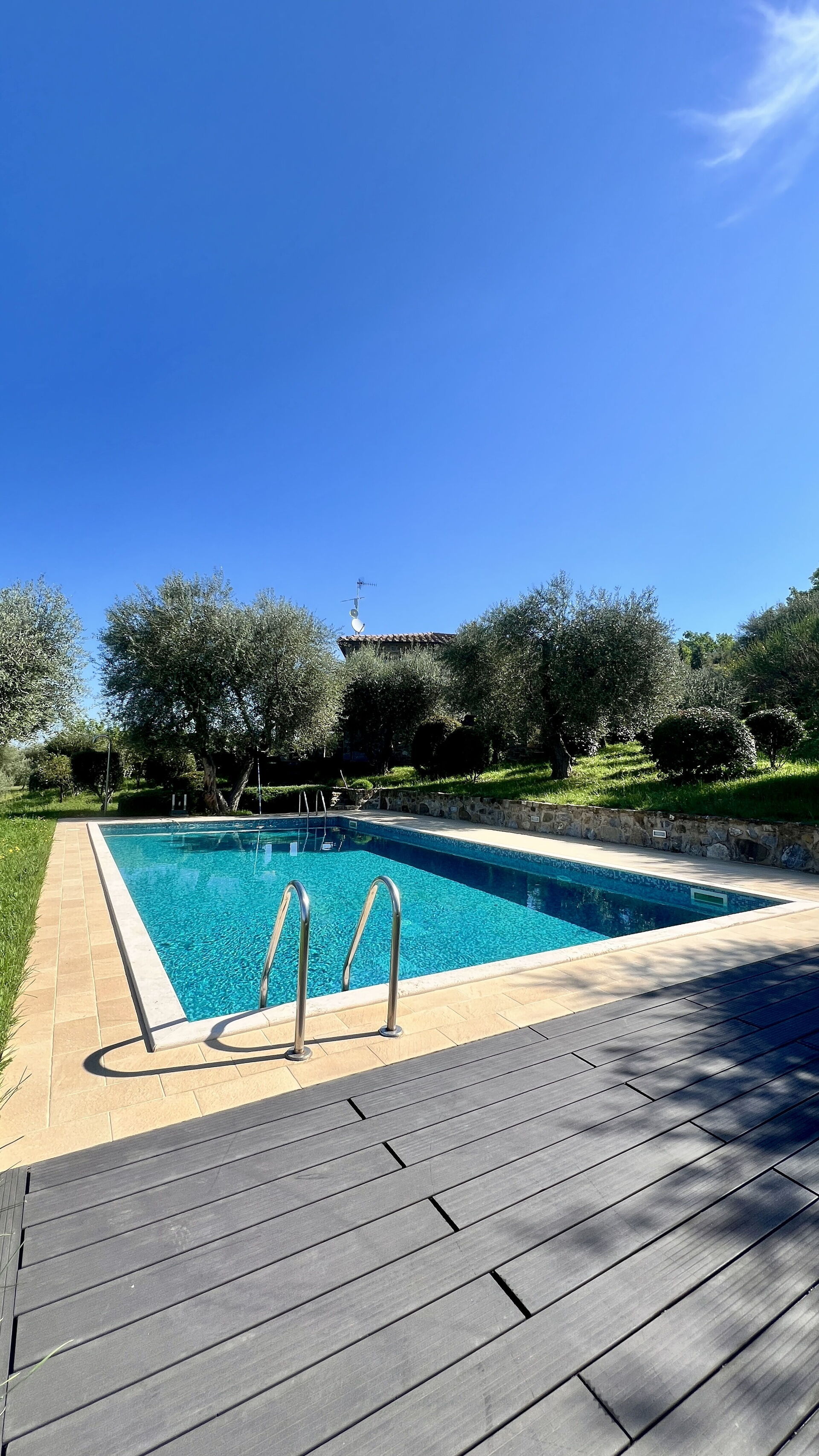 Die Liegenschaft ist absolut ruhig gelegen, grandiose Aussicht und genügend Platz. Wer gewohnt ist auf Naturwegen zu fahren kommt auch problemlos zum Haus (wir haben für diesen Trip einen Audi A6 Competition gefahren). Maurizio ist ein prima Gastgeber und kümmert sich sehr gut um die Liegenschaft. Wir haben das Heizen des Pools getestet und empfehlen es nicht unbedingt. 1m3 Gas = ca. +1°C Temperatur. Da es keine Möglichkeit gibt den Pool abzudecken haben wir es aber nicht weiter genutzt. Wir haben wunderschöne Tage verbracht und empfehlen das Haus uneingeschränkt weiter.