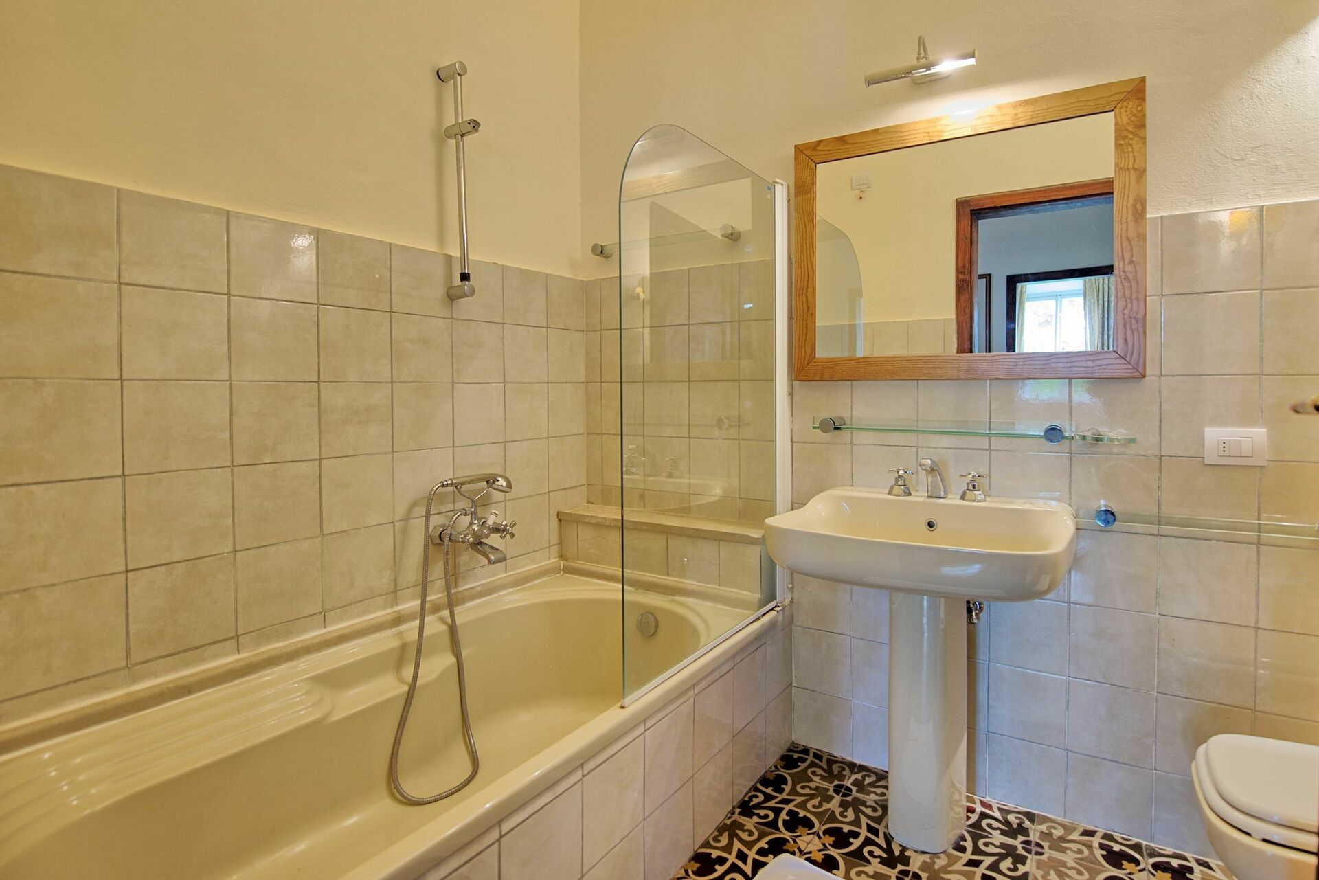 Nice city villa near Lucca. Comfortable bed- and bathrooms; nice outside terrace. Could use a good dining table and chairs to sit outside as a group. Kitchen old (monument), with good supplies of crockery etc. Pool was nice, missed pool lights and/or a lighted path to that area.