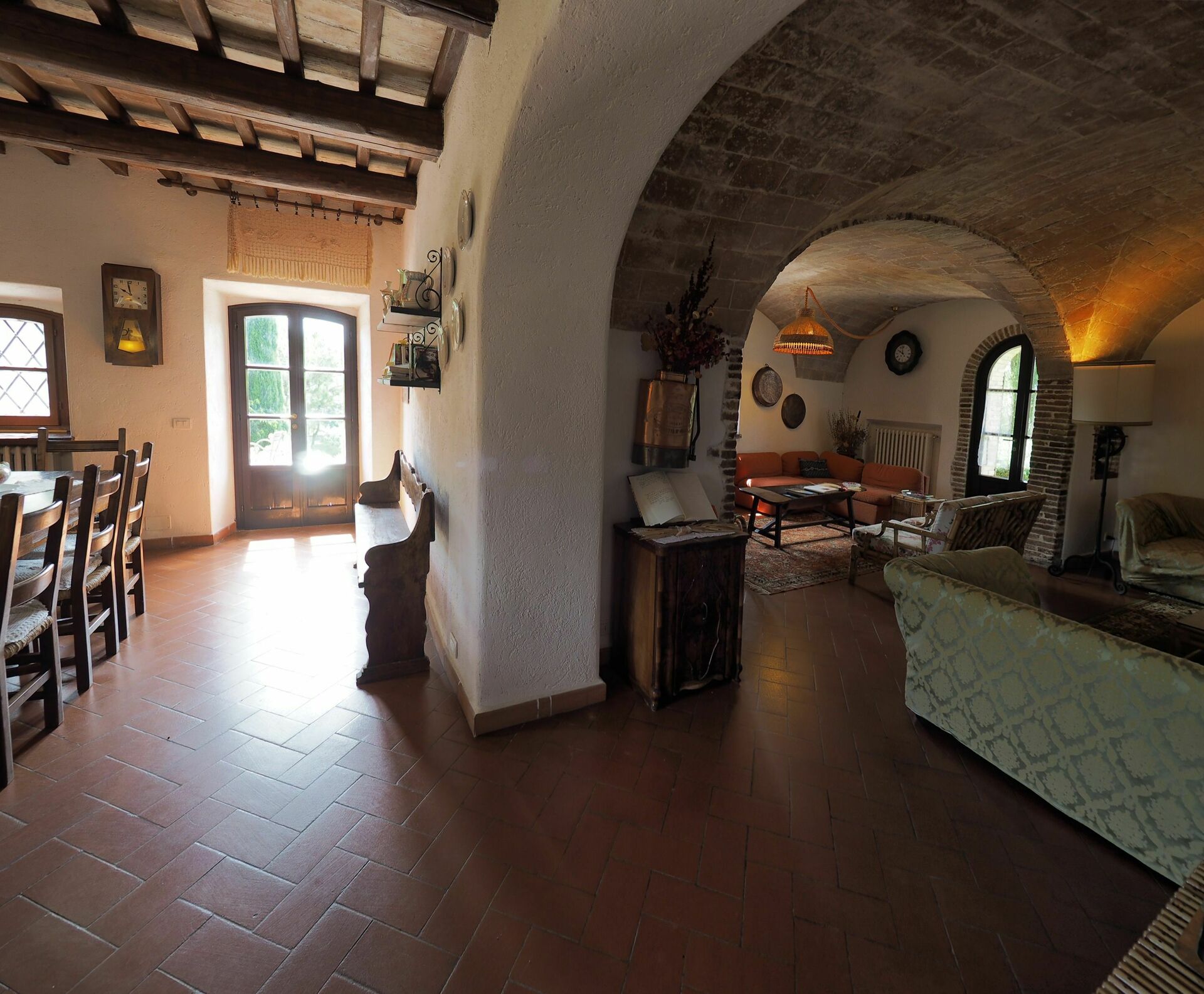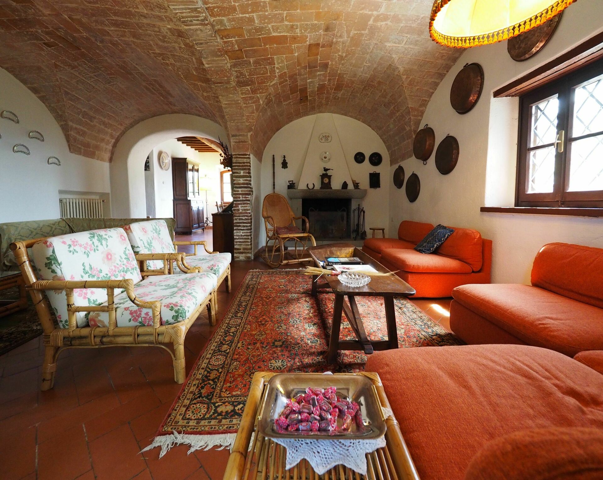 Stor stue med sofaer, hyggelig spisestue, tilgang (via 3 trinn) til et stort velutstyrt kjøkken (ovn, fryser, oppvaskmaskin, brødrister, kaffetrakter) med stor peis ideell for grilling, veranda brukt som bod som fører til en stor møblert terrasse. 2 trinn høyere: toalett