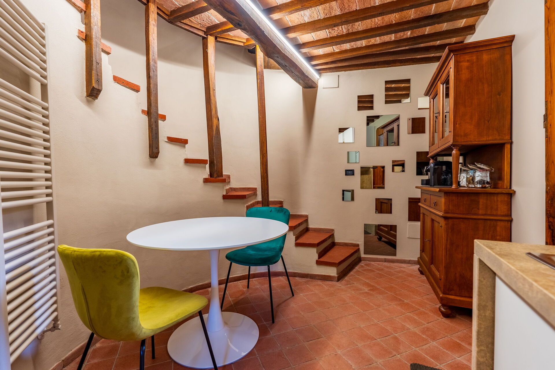 Tårnet er fullstendig restaurert for å bevare den opprinnelige strukturen og arkitekturen, samtidig som det er moderne og innbydende inne. "Torre di Serre" har 1 soverom, perfekt for par som leter etter privatliv og ønsker nærhet til byen. I første etasje er kjøkkenet og spiseplassen, i andre etasje er stuen og i tredje etasje er soverommet med bad.