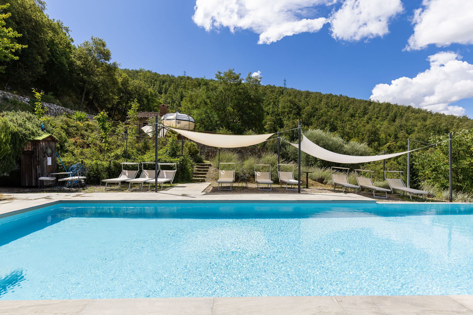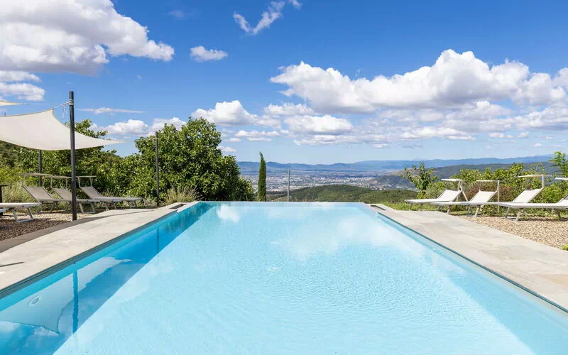Nydelig villa nær Sesto Fiorentino i Toscana Italia. Feriehuset var opprinnelig et gammelt kloster som kan dateres tilbake til 1200-tallet. Huset er nylig restaurert og fremstår i dag gjort om til et pent landsted. Eiendommen ligger fredfullt til ved foten av Mount Morello og byr på en fantastisk panoramautsikt. Firenze ligger 10km unna og man har et vakkert utsyn mot byen fra huset.Eiendommen er fullstendig inngjerdet og er omgitt av fruktrær, olivenlunder, og eiekeskog. Hagen som omgir huset er på 1000 kvm og har flere terrasser samt et nydelig svømmebasseng. Huset er pent innredet med god komfort. Naturreservatet Mount Morello ligger ikke langt unna og byr på gode muligheter for gåturer i den vakre omgivelser.