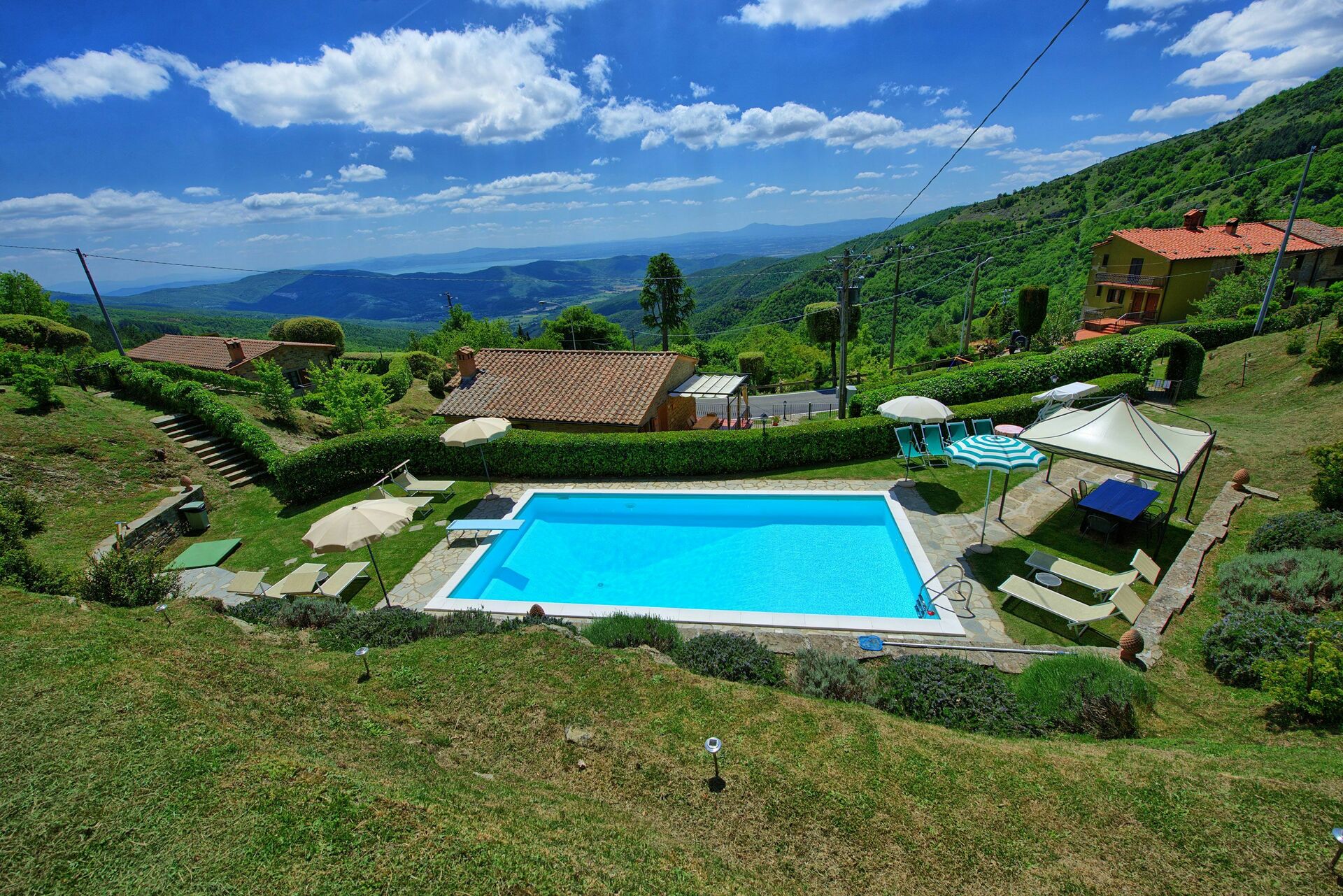 A small note concerns the villa's mid-mountain location. This location means a temperature difference of about 4/5 degrees compared to the plain. This proved to be an advantage during the hotter days, but might be a bit chilly when the weather is not optimal. During our stay, however, we were lucky with the weather and enjoyed an absolutely perfect week.