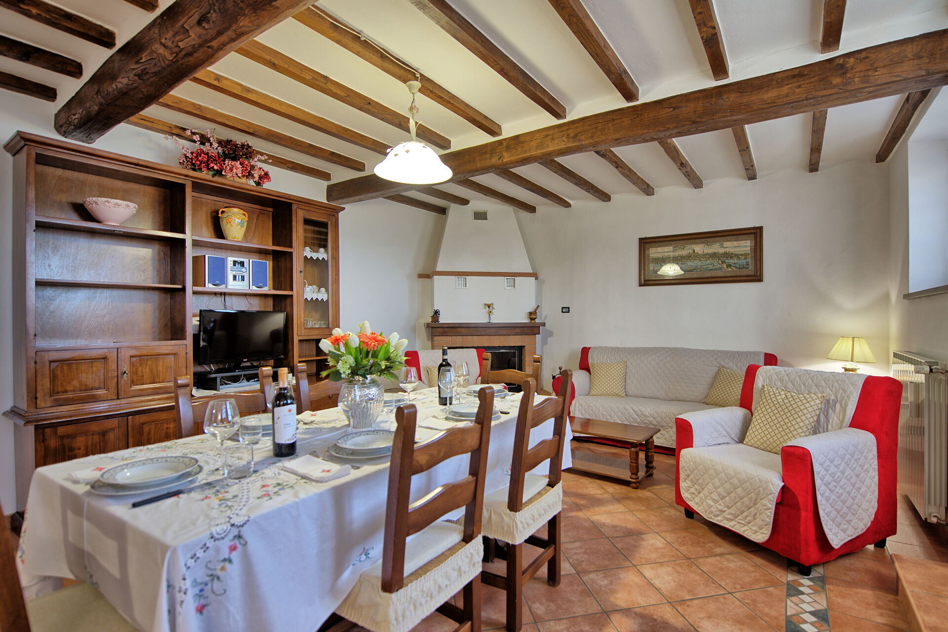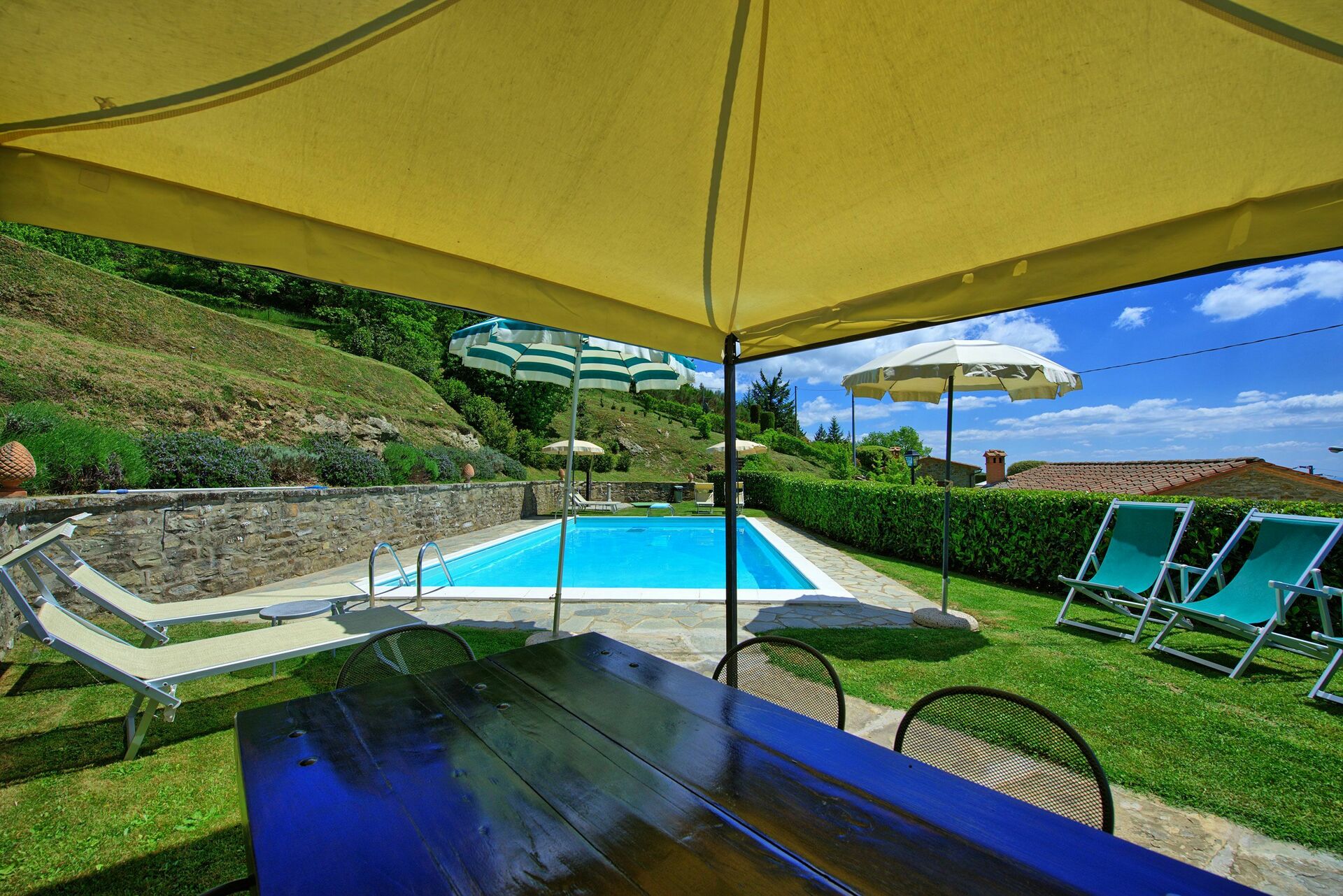 All necessary facilities were in perfect condition, everything is well maintained. The house was very clean and it is spacious enough for a group of 6 adults. Air conditioning was a blessing, Tuscany in August can be very hot. The garden is beautiful and the sunbeds by the pool are so comfortable! Cortona and the fantastic Tuscan coutryside are waiting for you down the road.