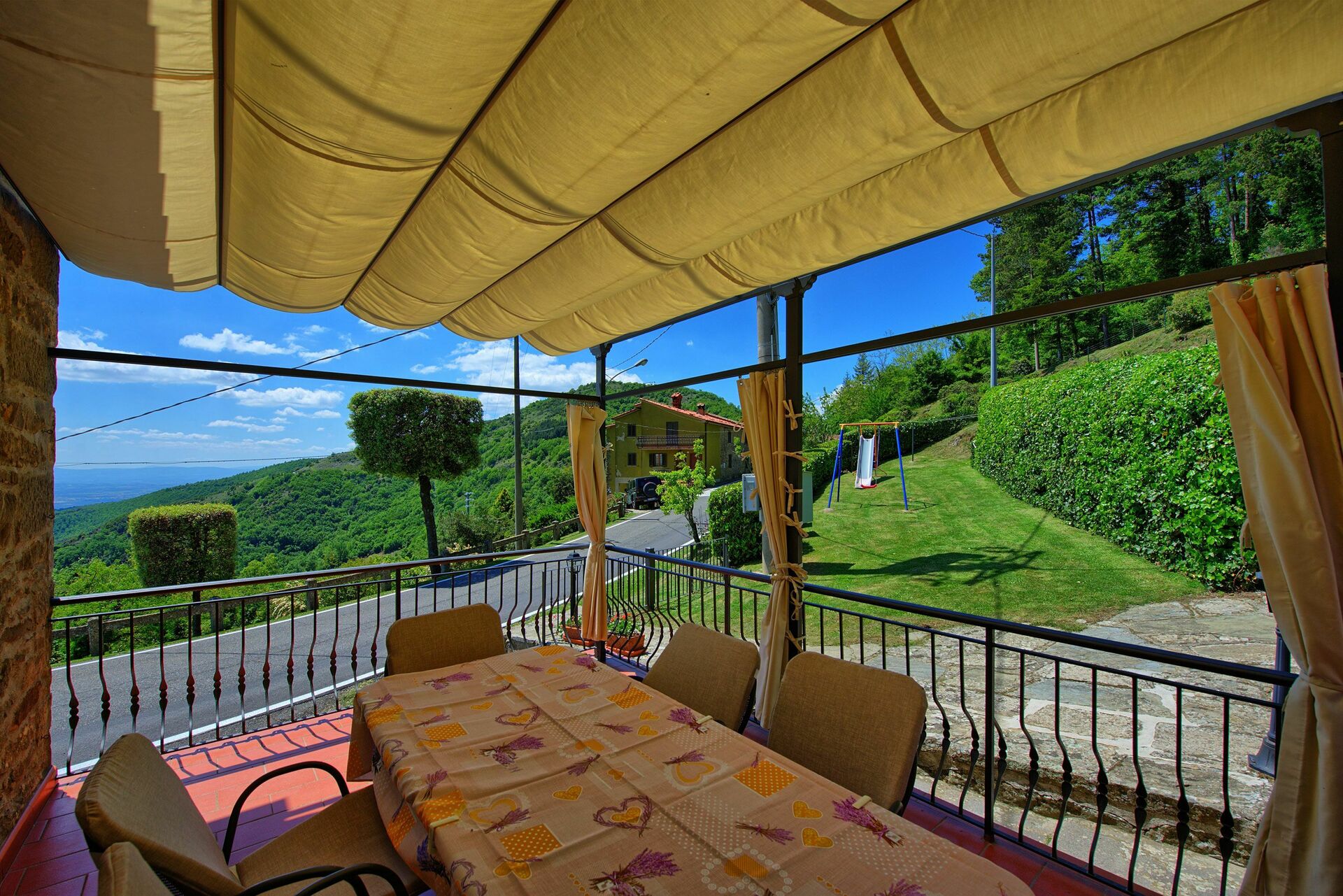 Very complete and clean inventory of the villa. From the terrace (with adjustable sun and wind-screens), you will have a beautiful view over the valley, perfect plac for breakfast, lunch and dinner. Swimming pool is good place to stay on hot days. The owners (Rosanna and her mother) hospitable. When we arrive there were cool drinks in the refrigerator. Next day we got fresh tomatoes, herbs (for paste) eggs from the garden of the owner (the mother lives 50 meters across the street.