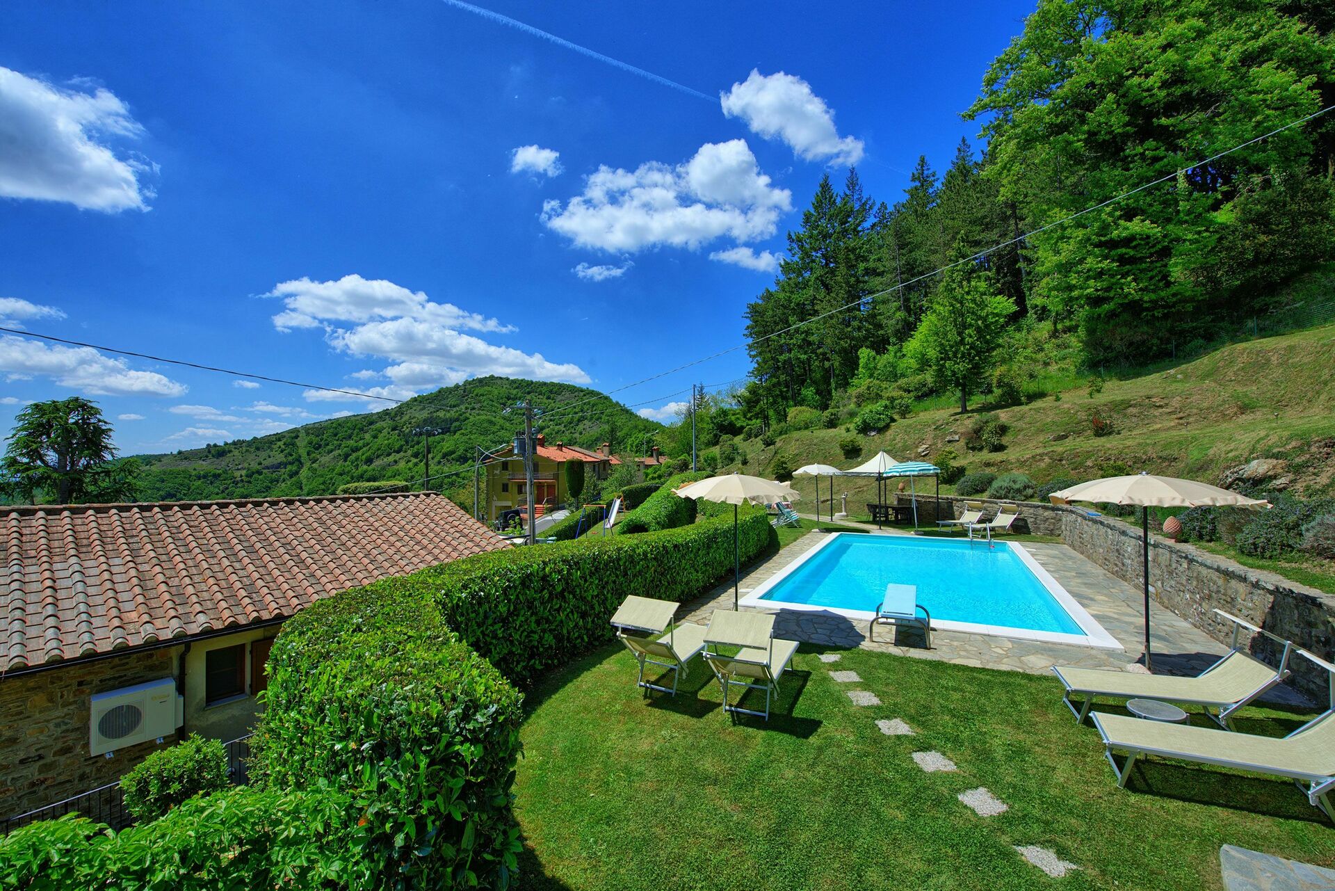 A perfect experience in the mountains. Breathtaking view, perfect accommodation, beautiful Tuscan house, spacious and well equipped, very suitable for families, car parking, lovely balcony, heating system, air conditioning in the rooms, stone fireplace, fully equipped kitchen (a paradise for people who love to cook), lovely pool.