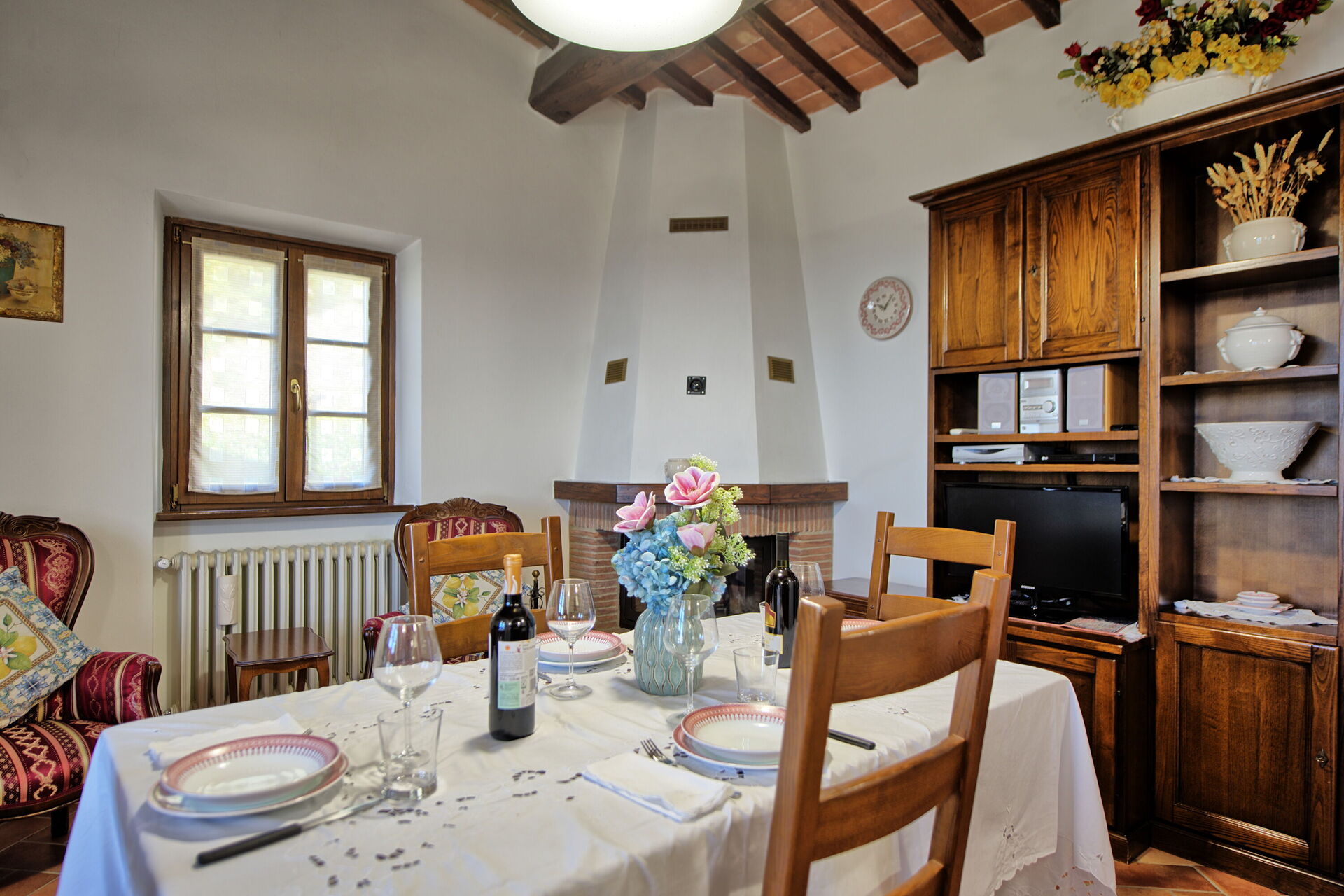 We stayed here for a week in August. If you are looking for peace and quiet and fantastic views this is the place for you. The villa is well equipped and comfortable, it has everything you would require. The housekeeper was lovely and lived across the road and brought us lovely eggs and tomatoes from her garden as well as a set-up of a beer and bottle of wine waiting in the fridge on arrival. The villa is in the hills just outside Cortona which is a beautiful walled town, great for lunch or dinner and only a 10 minute drive away. There is a Co-op supermarket 5 minutes outside of Cortona. The pool and garden are absolutely lovely and the views were even better from up in the garden. Would thoroughly recommend staying here.