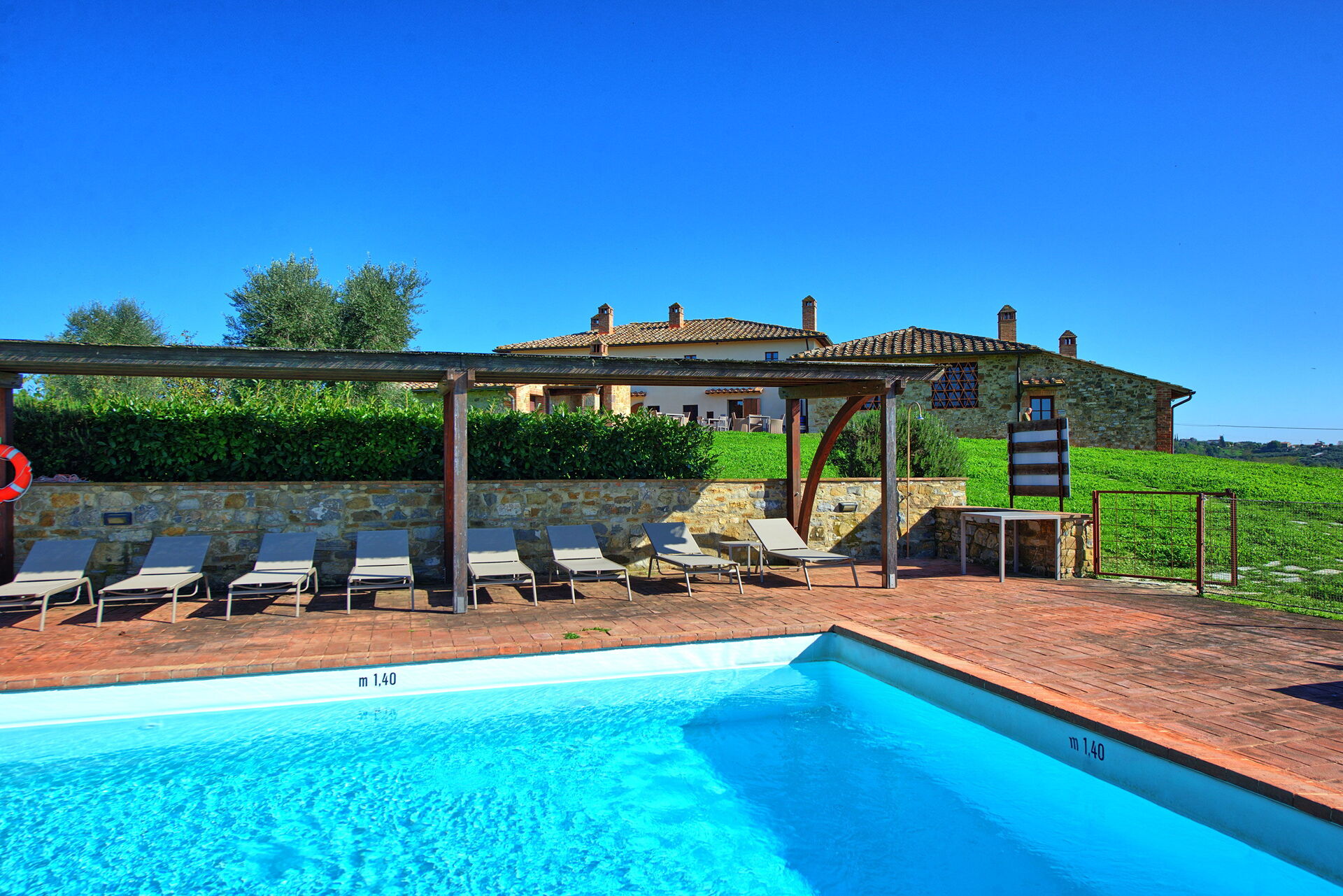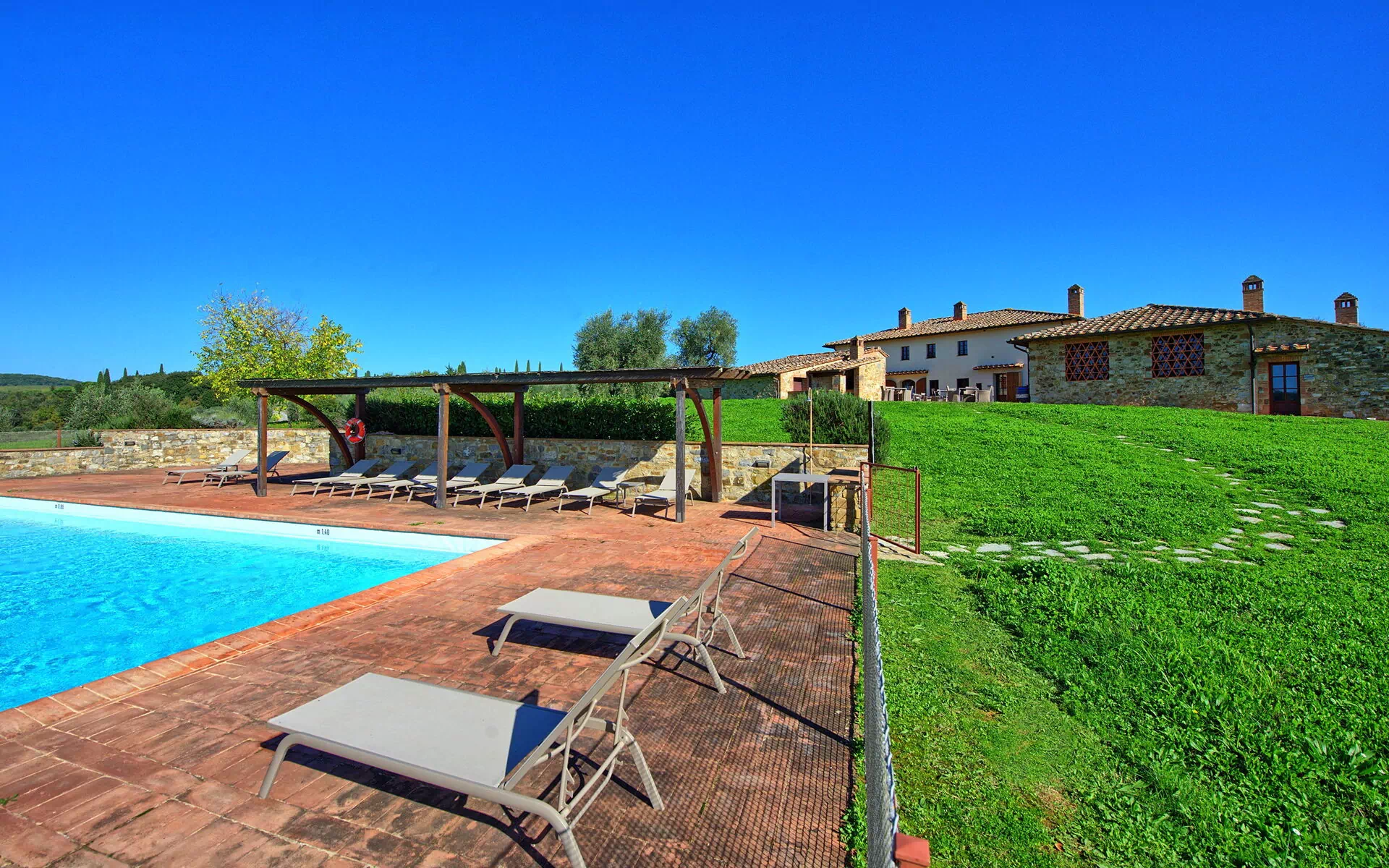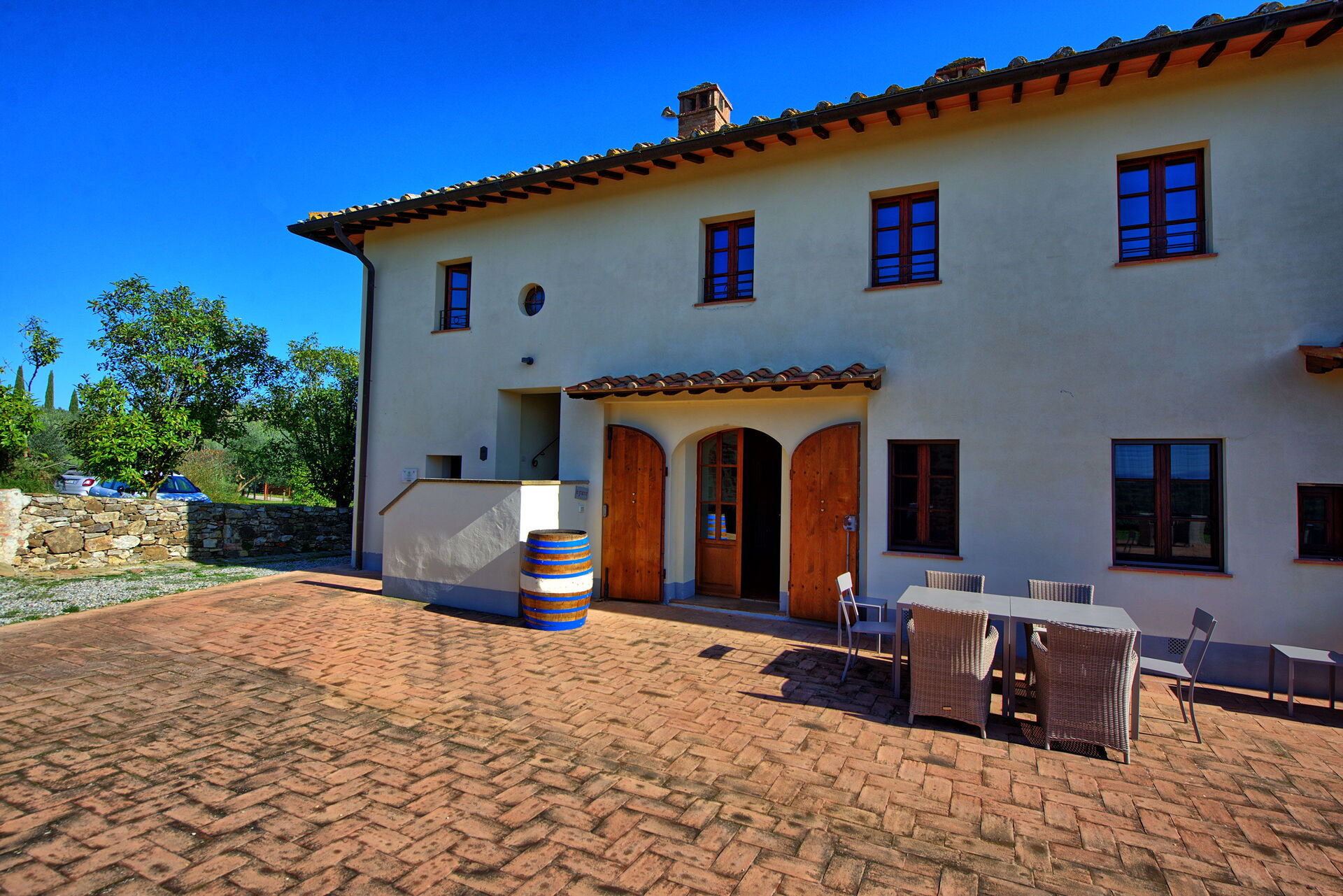 Feriehuset er pent restaurert og omgjort til 6 komfortable leiligheter som er innredet i rustikk stil med noen innsalg av antikviteter. Eiendommen ligger fredelig til på åsene i Chianti Classico og er omgitt av vingårder og olivenlunder. Fra eiendommen har man nydelig panoramautsikt hvor man kan skimte Siena i det fjerne. Ferieboligen har en stor velholdt hage (6000 m2) med evighetsbasseng som disponeres av gjestene i de 6 leilighetene. Veteransykkeløpet l'Eroica som arrrangeres i Toscana hver høst passerer rett forbi eiendommen.