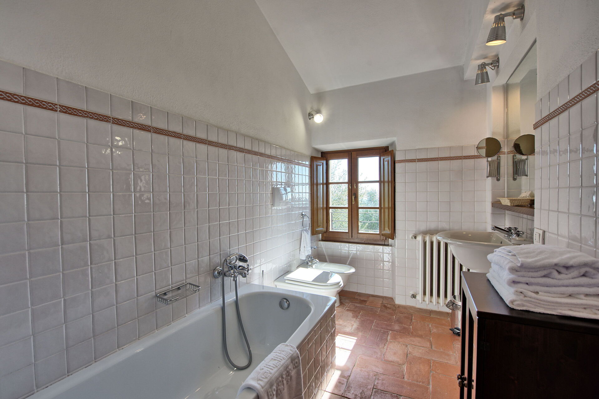 Fra stuen er det flott panoramautsikt over det omkringliggende landskapet og Siena i det fjerne.