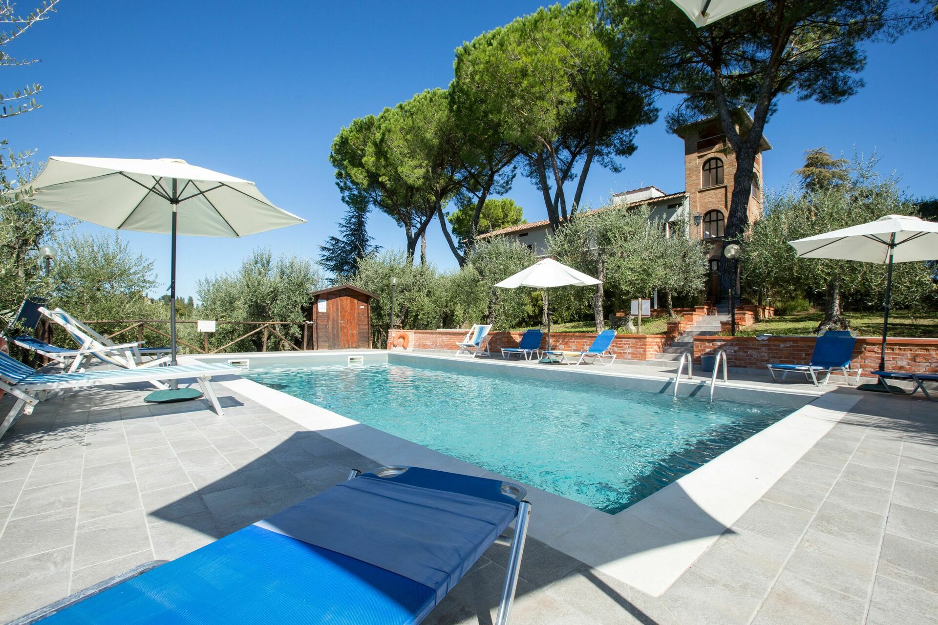 Stort feriehus med privat svømmebasseng til leie nær Certaldo i Toscana. Huset ligger også kort avstand fra den vakre historiske byen San Gimignano som er kjent for sine mange tårn.