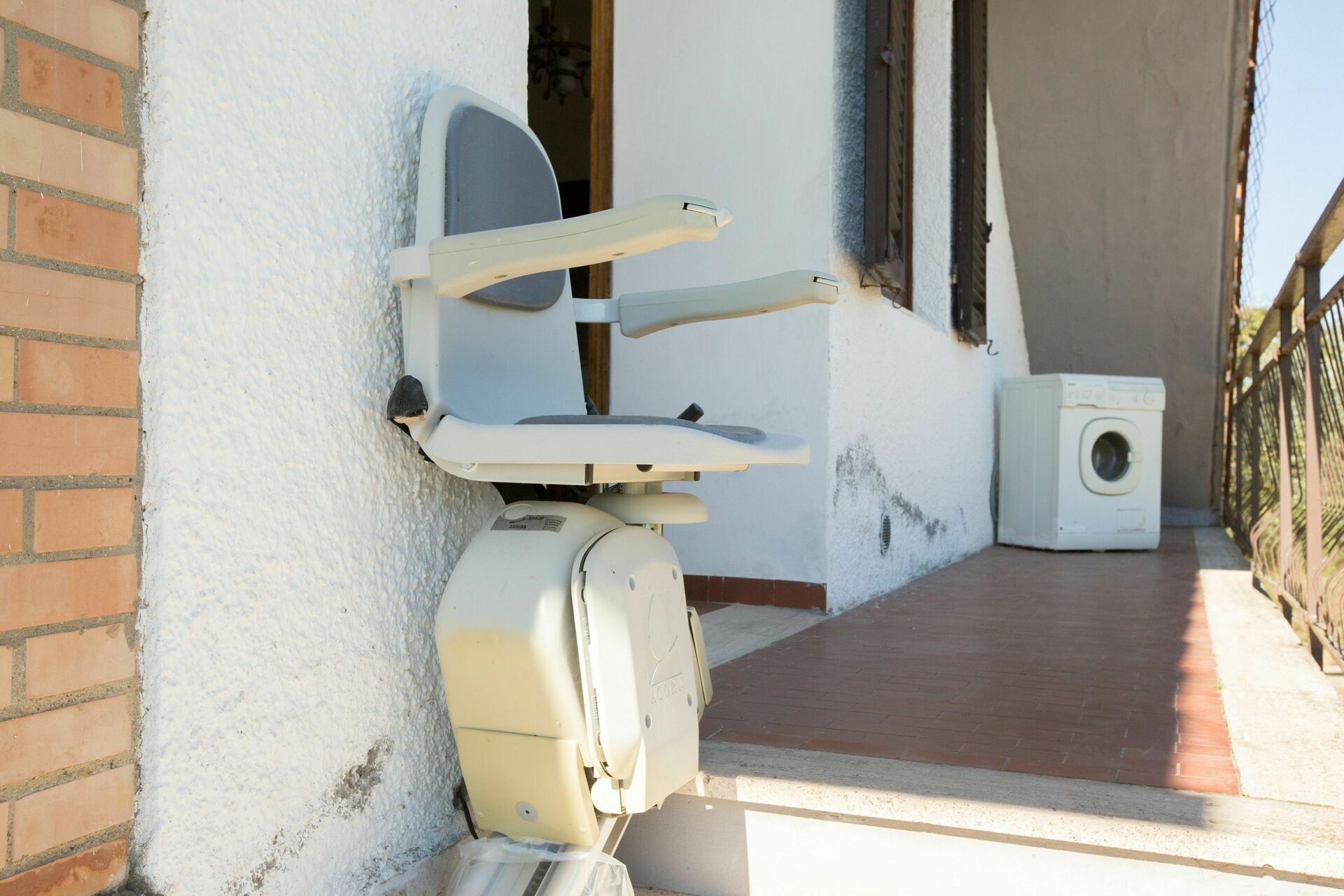 Leiligheten er tilgjengelig for rullestolbrukere via en trappeheis.