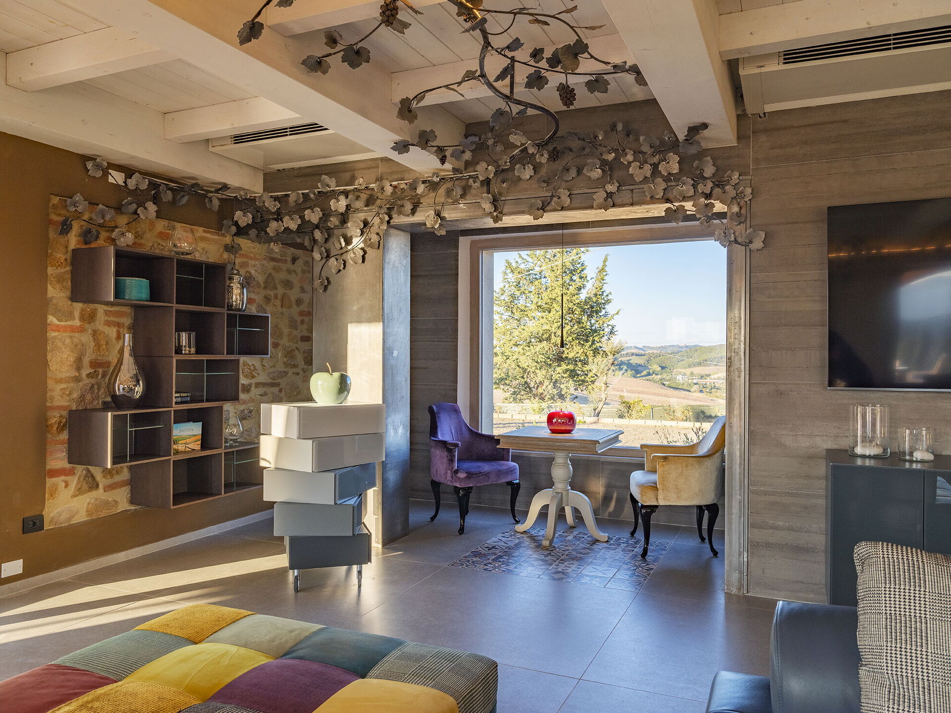 Gården produserer korn, vin og olje, og gårdens mange produkter (honning, marmelade, pasta, vin, olje og kjøtt) står på menyen på den utmerkede restauranten kun 900 meter fra villaen. På gården er det også en stall med hester der du kan ri.