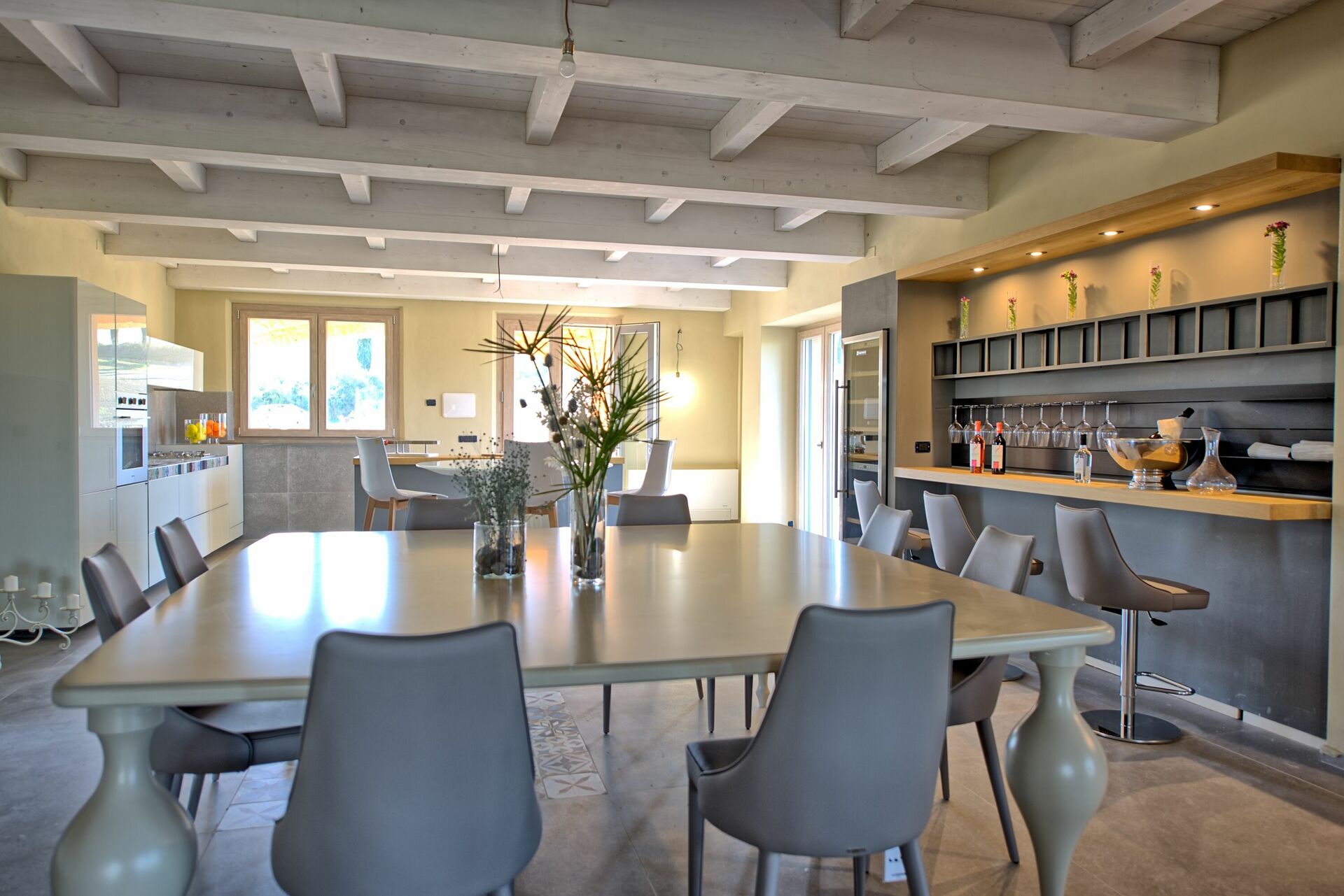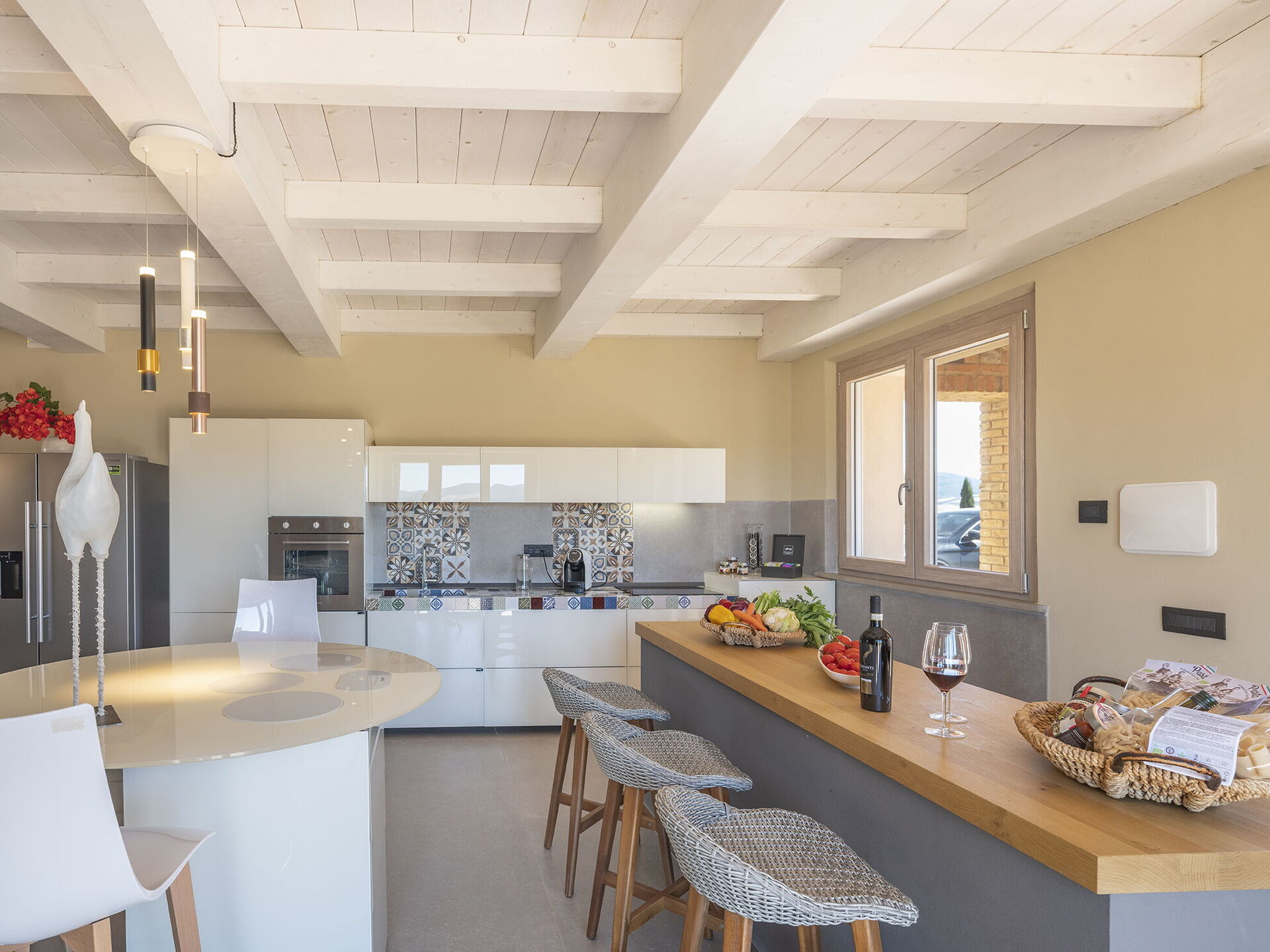 Denne moderne villaen er elegant innredet; ute er det store områder for avslapning eller uteaktiviteter, som det store bassenget med solterrasse, en nydelig grillplass, en bålplass og vidstrakte grøntområder.