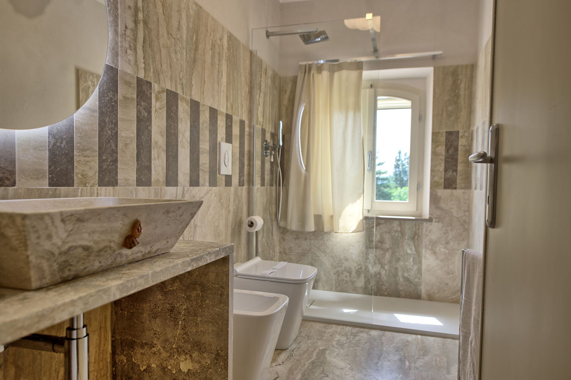 Andre etasje: stue (smart-TV og aircondition) med sovesofa (dobbel), spiseplass og kjøkkenkrok (oppvaskmaskin, stekeovn, kjøleskap, espressomaskin, brødrister), 2 soverom med dobbeltseng (hver med aircondition), 2 bad med dusj.