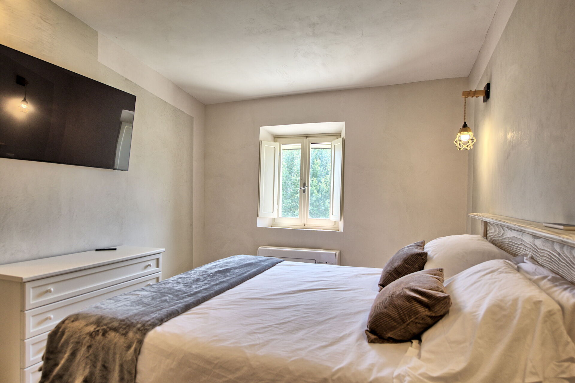 Hevet første etasje: stue (smart-TV, aircondition) med dobbel sovesofa, spiseområde og kjøkkenkrok (oppvaskmaskin, stekeovn, kjøleskap, espressomaskin, brødrister), 2 doble soverom (hver med aircondition), bad med dusj.