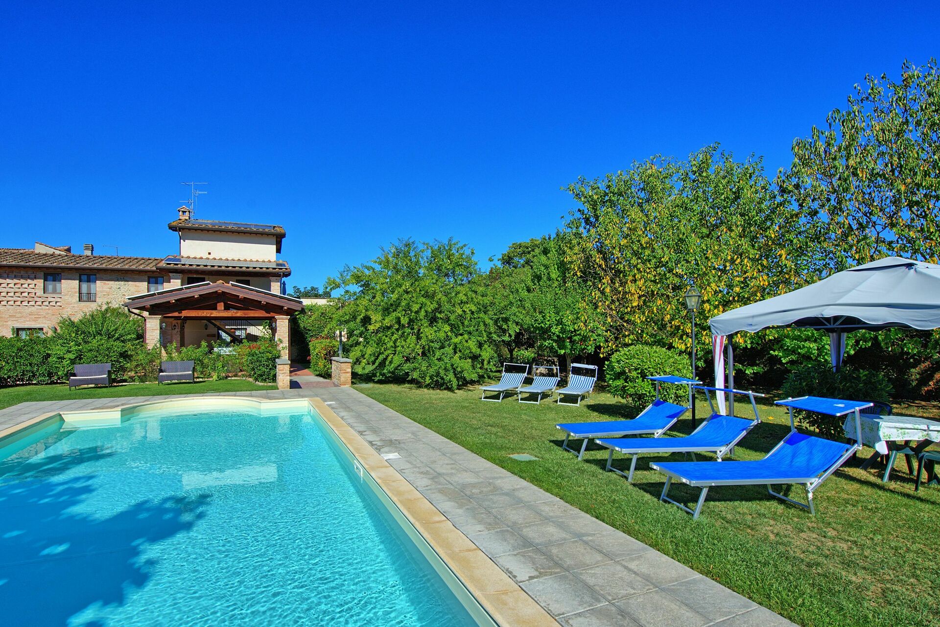 un séjour merveilleux avec des extérieurs superbes (grande piscine très accessible aux enfants) et des visites à une heure de route , Sienne, Florence , Pise, Pérouse et j'en passe...