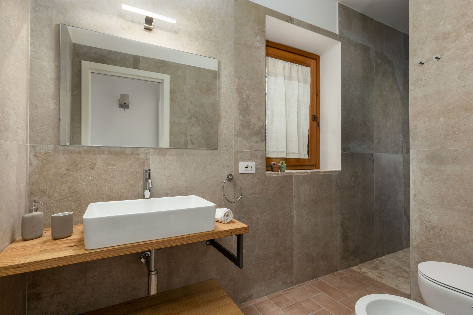 Andre etasje: stue med smart-TV, dobbeltrom, bad med dusj, soverom med dobbeltseng + enkeltseng, eget bad med dusj og utgang til privat, terrasse med panoramautsikt.