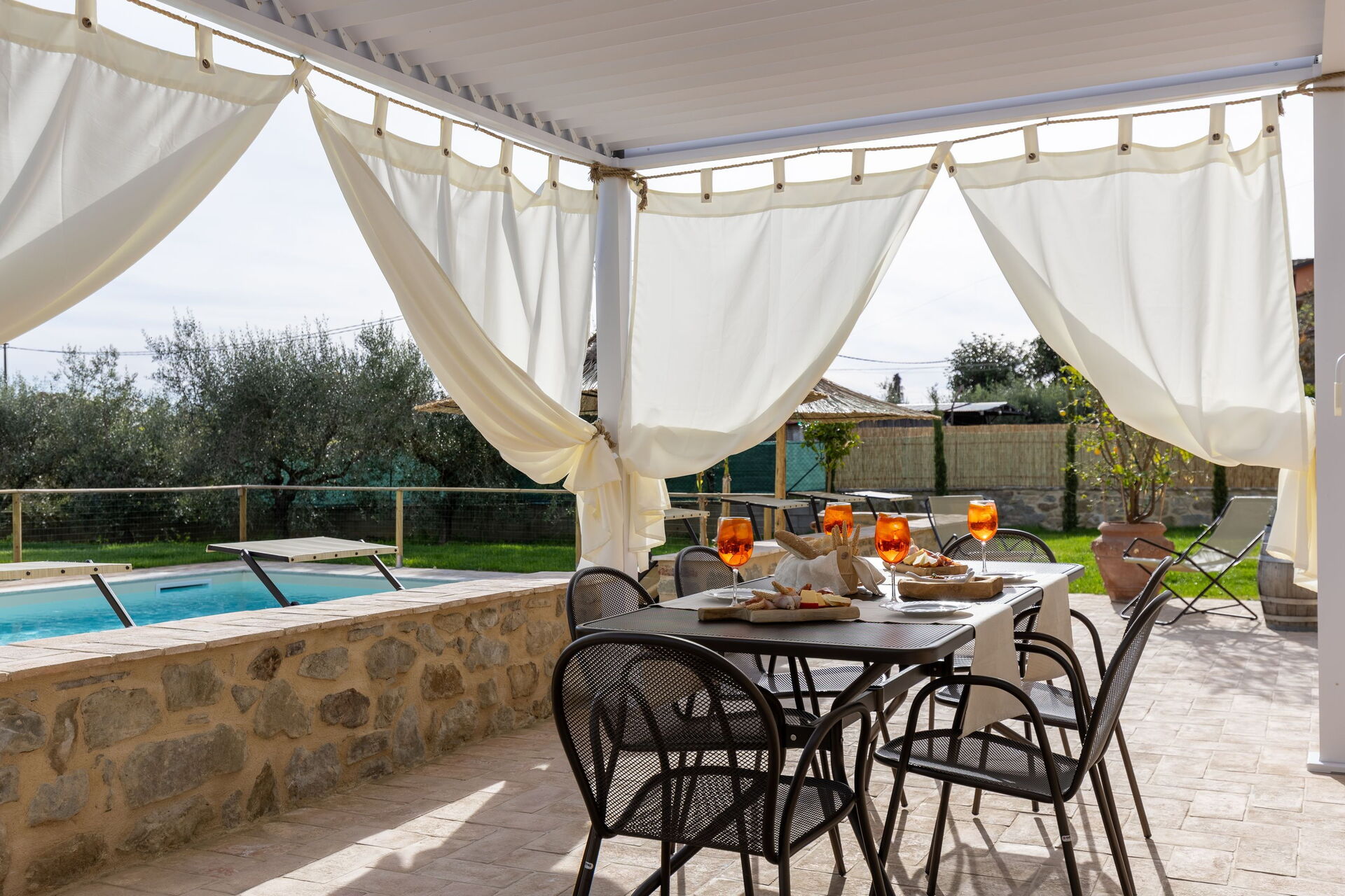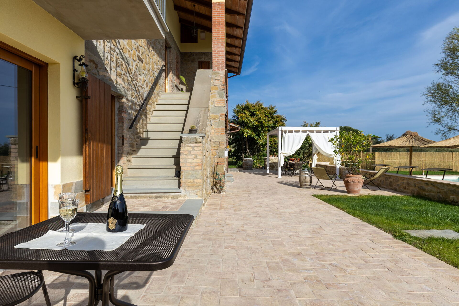 Huset er nylig renovert og omgjort til et innbydende fereiehus med 3 soverom og som lett kan huse opptil 6/7 personer. På eiendommen er det et pent basseng og en velstelt hage som er til gjestenes fulle disposisjon. På terrassen mellom huset og bassenget er det en helt ny pergola. Det perfekte stedet å nyte lunsj eller middag utendørs.