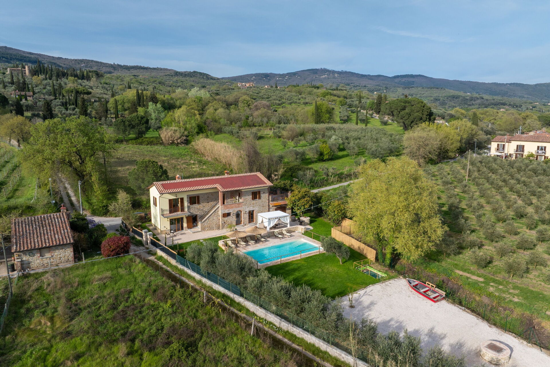 Villa Anna har en strategisk beliggenhet på grensen mellom Toscana og Umbria, de vakreste regionene i det sentrale Italia. Herfra kan du utforske Siena, Cortona, Montepulciano, Arezzo, Perugia, Assisi, Spello og Gubbio, samt Firenze og Roma (det går tog til begge byene fra den nærliggende stasjonen Terontola/Cortona).