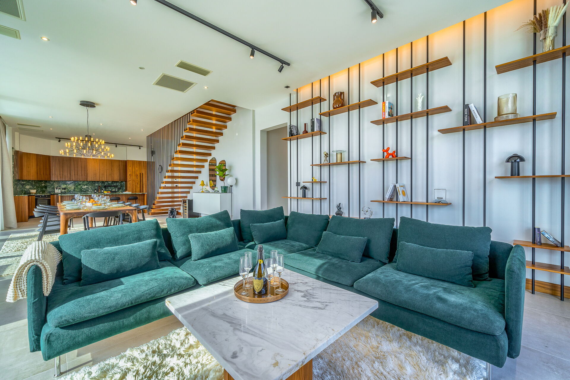 Villaen er utstyrt med alle moderne fasiliteter og luksus. Huset er pent møblert og har et lyst interiør. Med sine 5 soverom kan det lett huse opptil 10 personer.