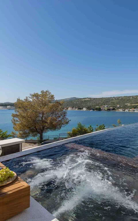 Denne luksusvillaen ligger i et eksklusivt og rolig boligområde med en unik beliggenhet bare 30 meter fra havet, og med direkte tilgang til stranden hvor du kan du nyte uforglemmelige svømmeturer i det krystallklare vannet som kysten av Kroatia har å by på.
