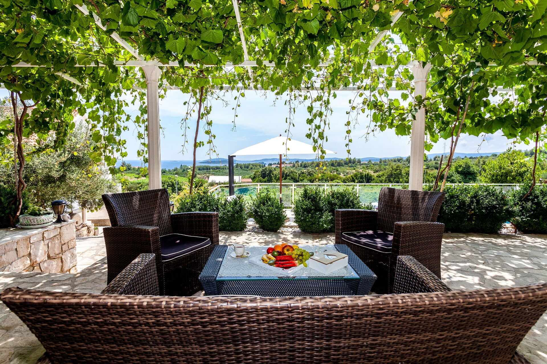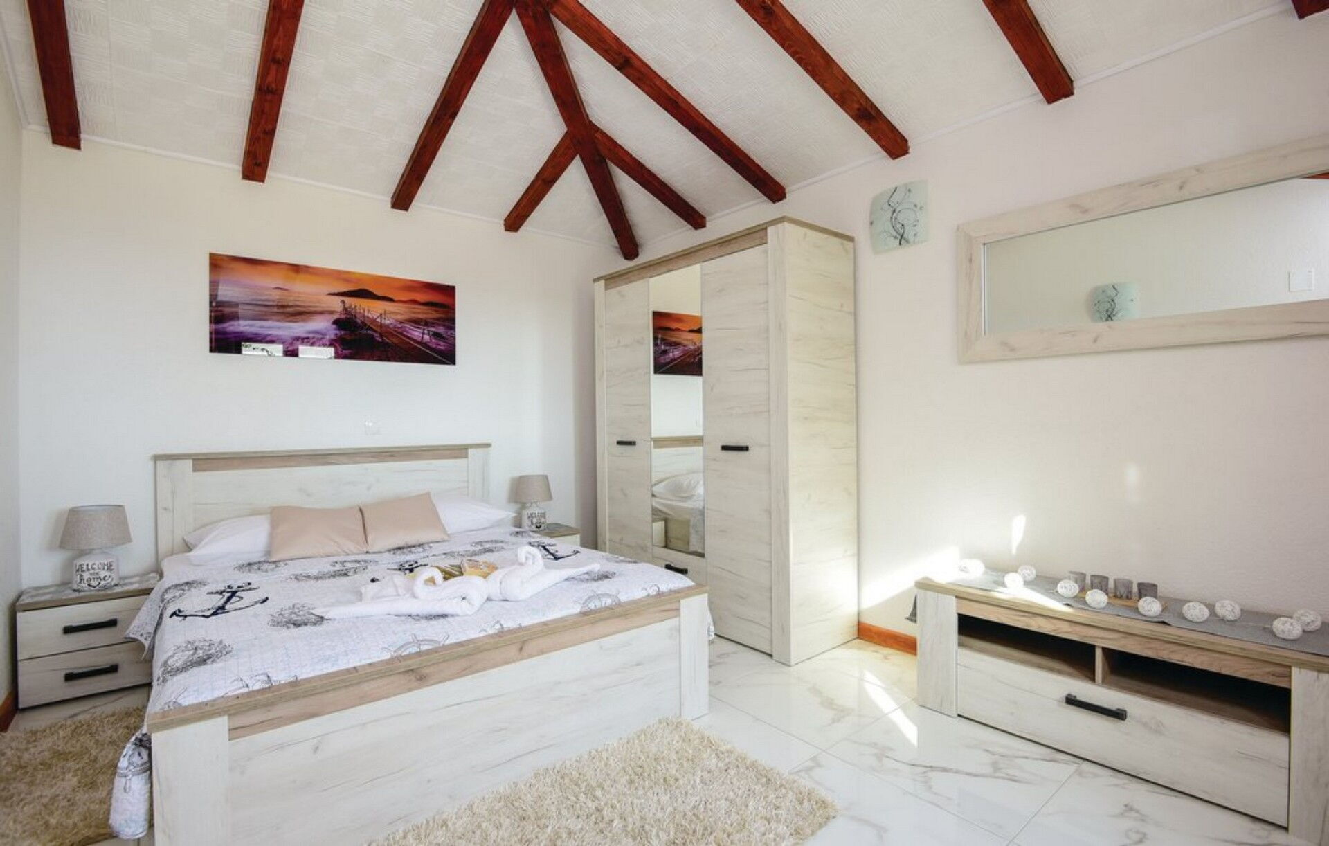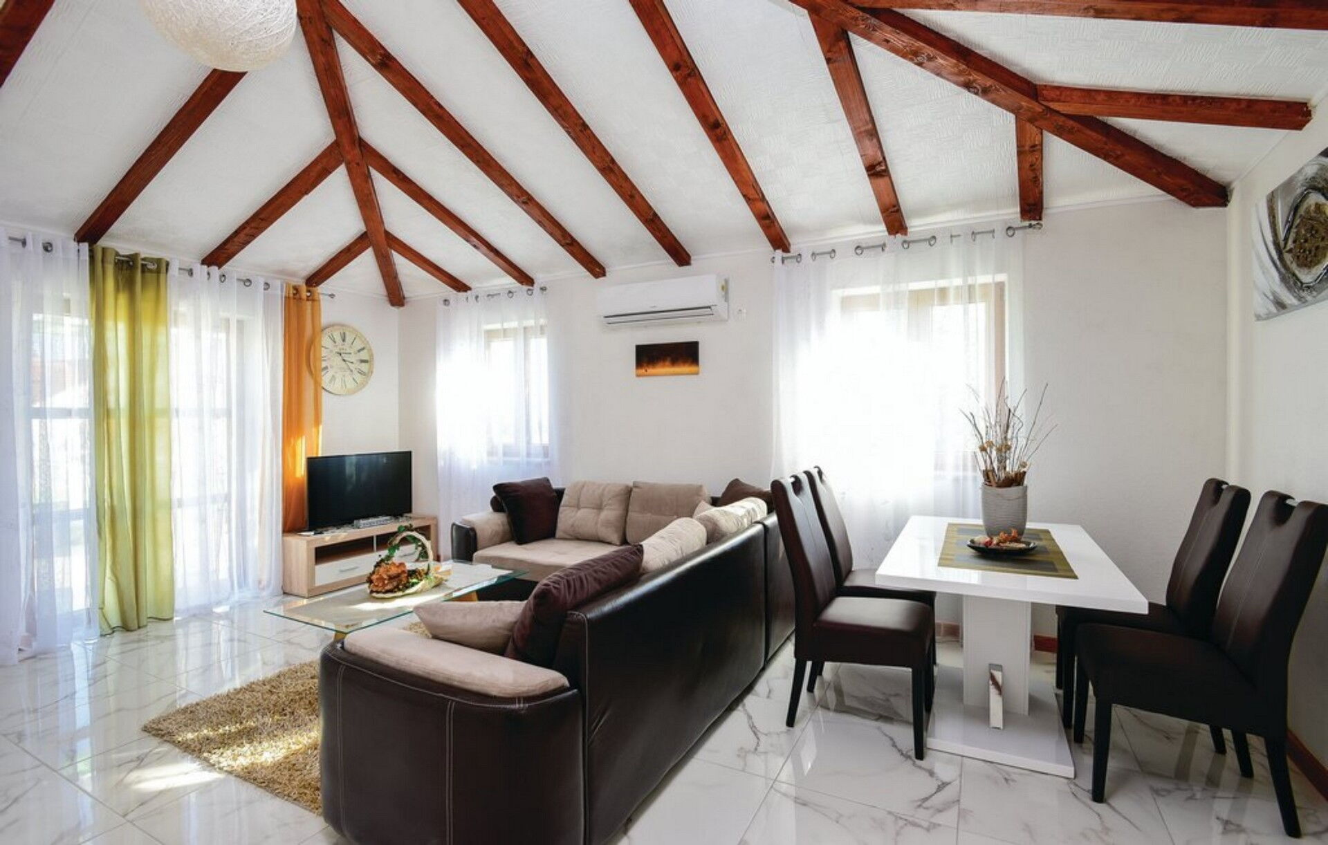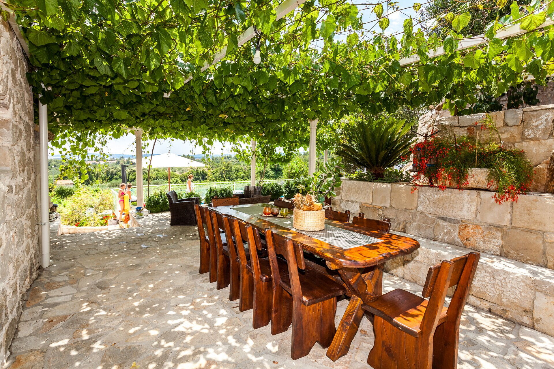 Ferieiendommen består av 3 små leiligheter og kan romme opptil 14 personer. To av de tre leilighetene er gamle dalmatiske hus som er pusset opp i tro til opprinnelig stil.