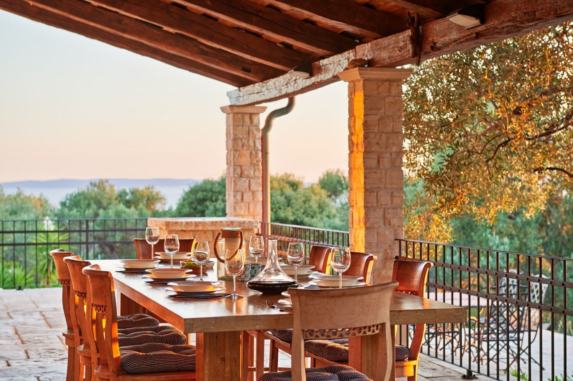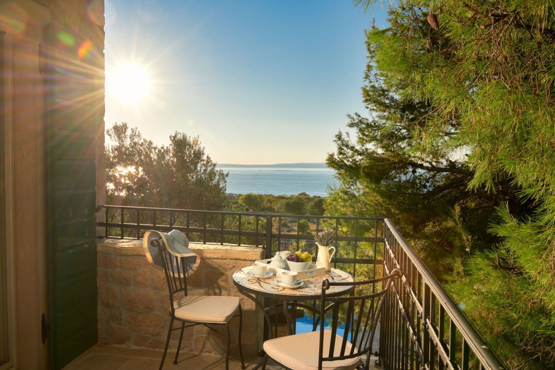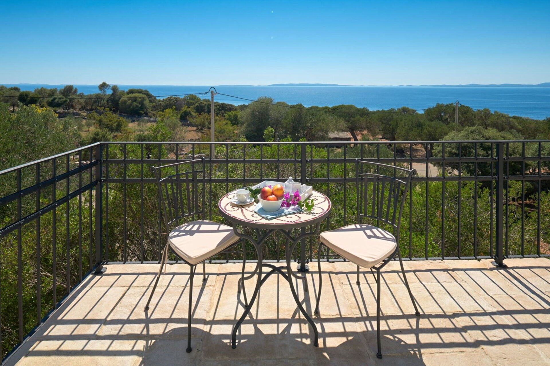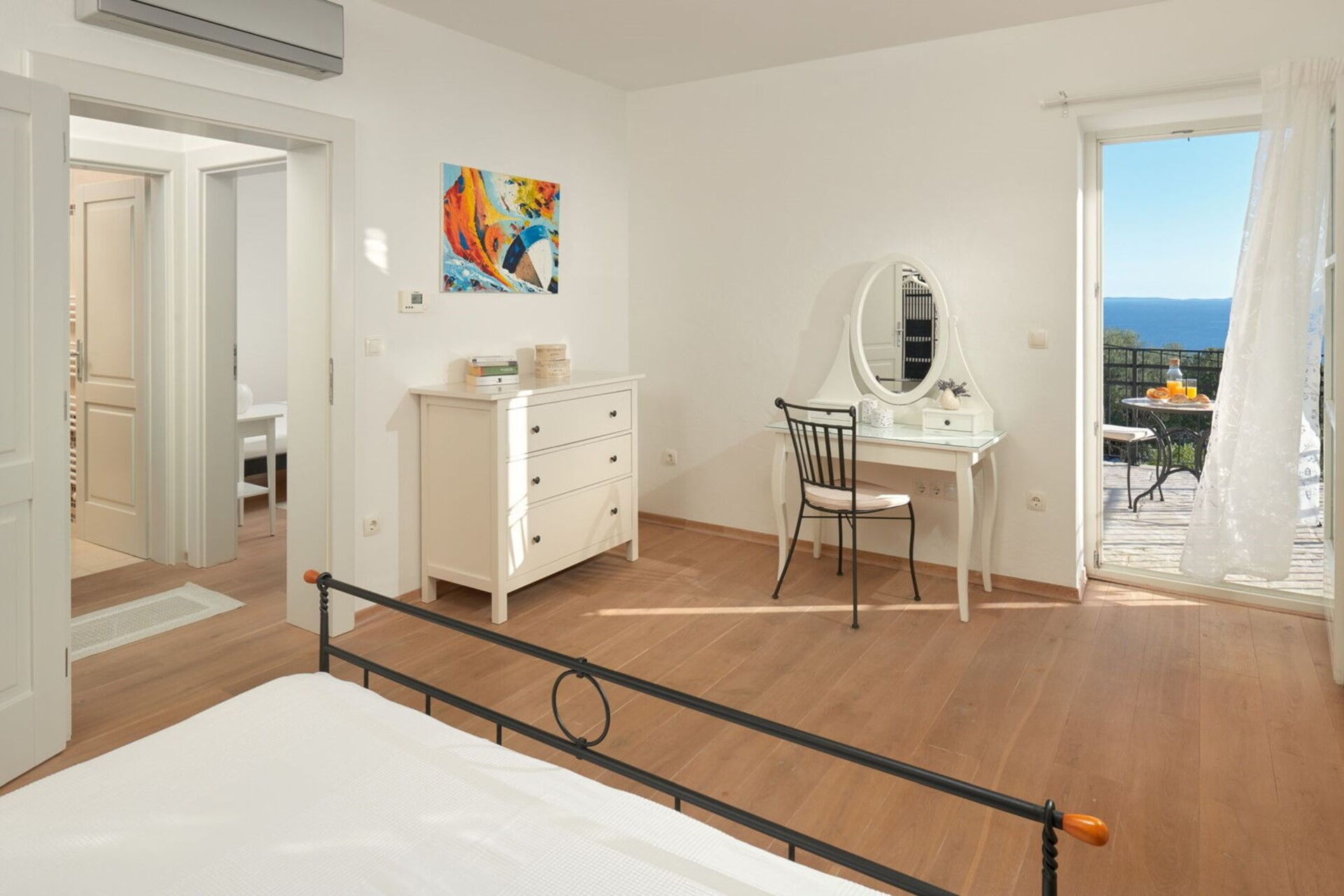 Feriehuset ligger i en åsside bare 250 meter fra stranden og har fantastisk havutsikt fra balkongene og den overbygde verandaen. Verandaen er utstyrt med spiseplass, noe som gjør den til et ideelt sted å nyte måltider sammen med familie eller venner.