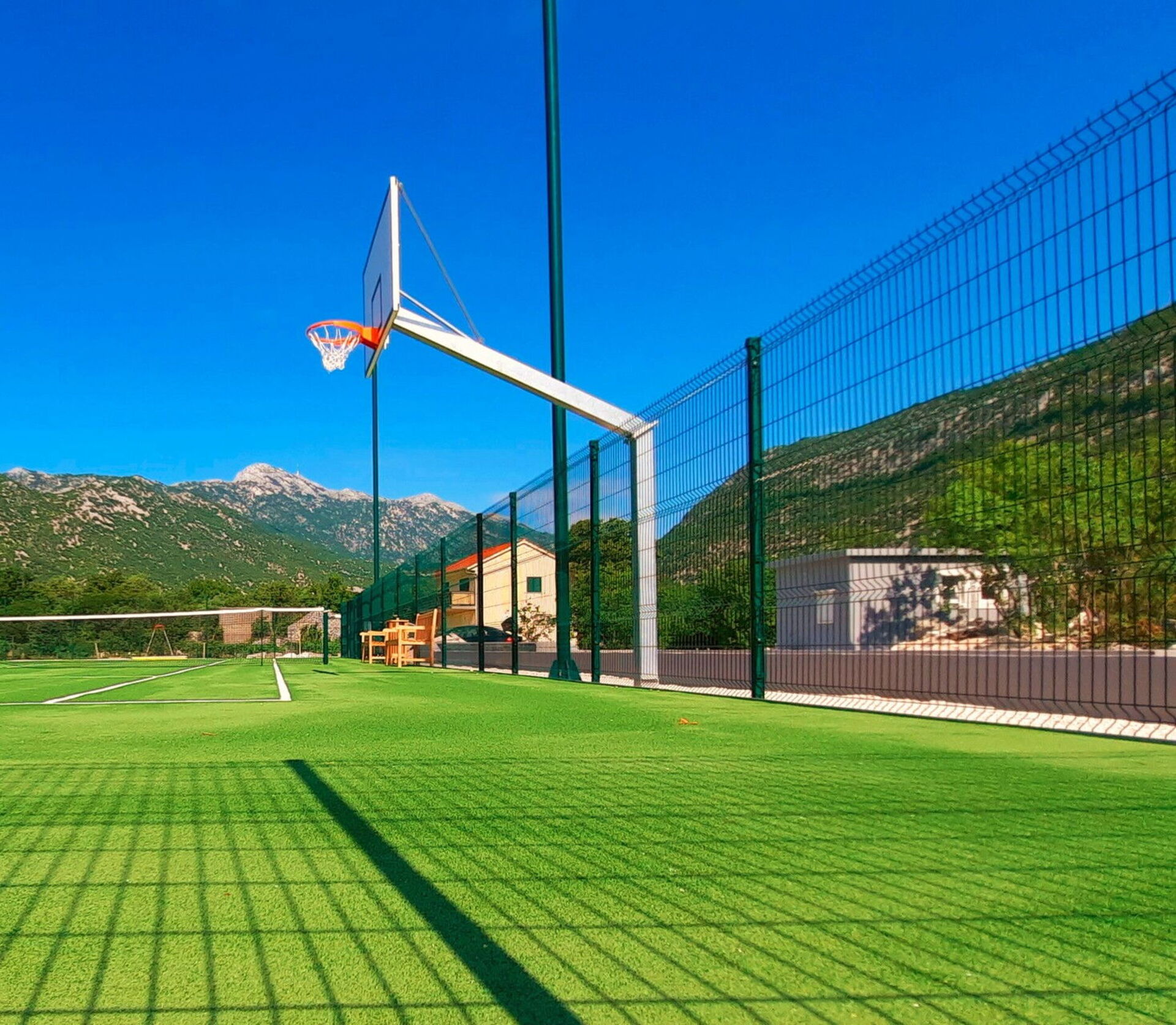 Feriehuset omgis av natur med fantastisk utsikt over fjellene og åsene, i tillegg ligger det noen skritt fra en minigolfbane, en tennis/basketball/fotballbane og en boccia-bane, der du kan tilbringe hele dager med moro med familien eller vennene dine.