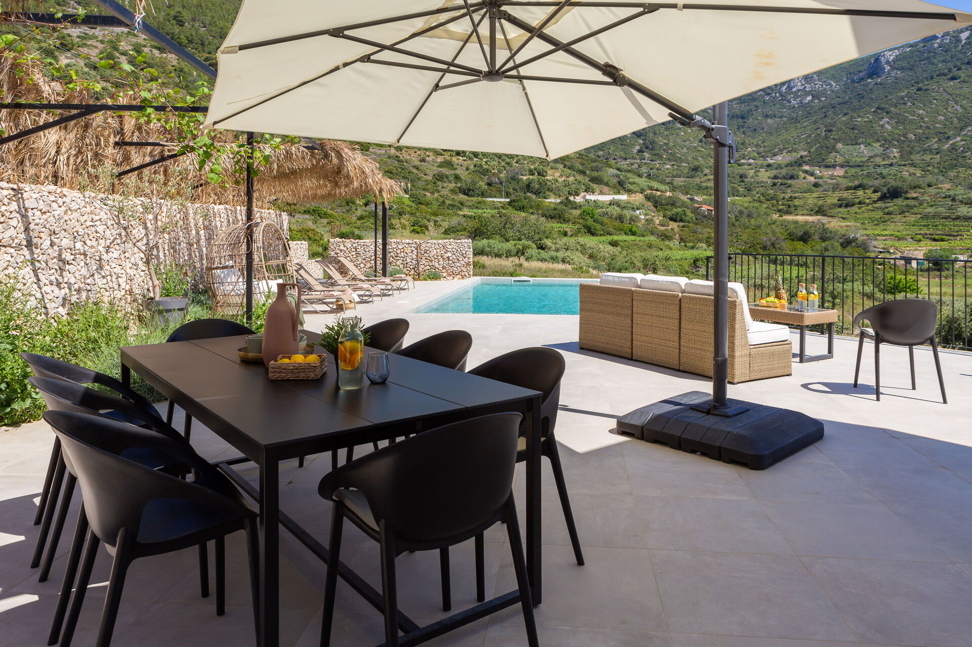 Takterrassen er fantastisk fin med nydelig utsikt, det perfekte stedet å se solnedgangen. Havet er bare 300 m unna, så Villa Vivere er det perfekte valget for avslapning og moro i ferien!