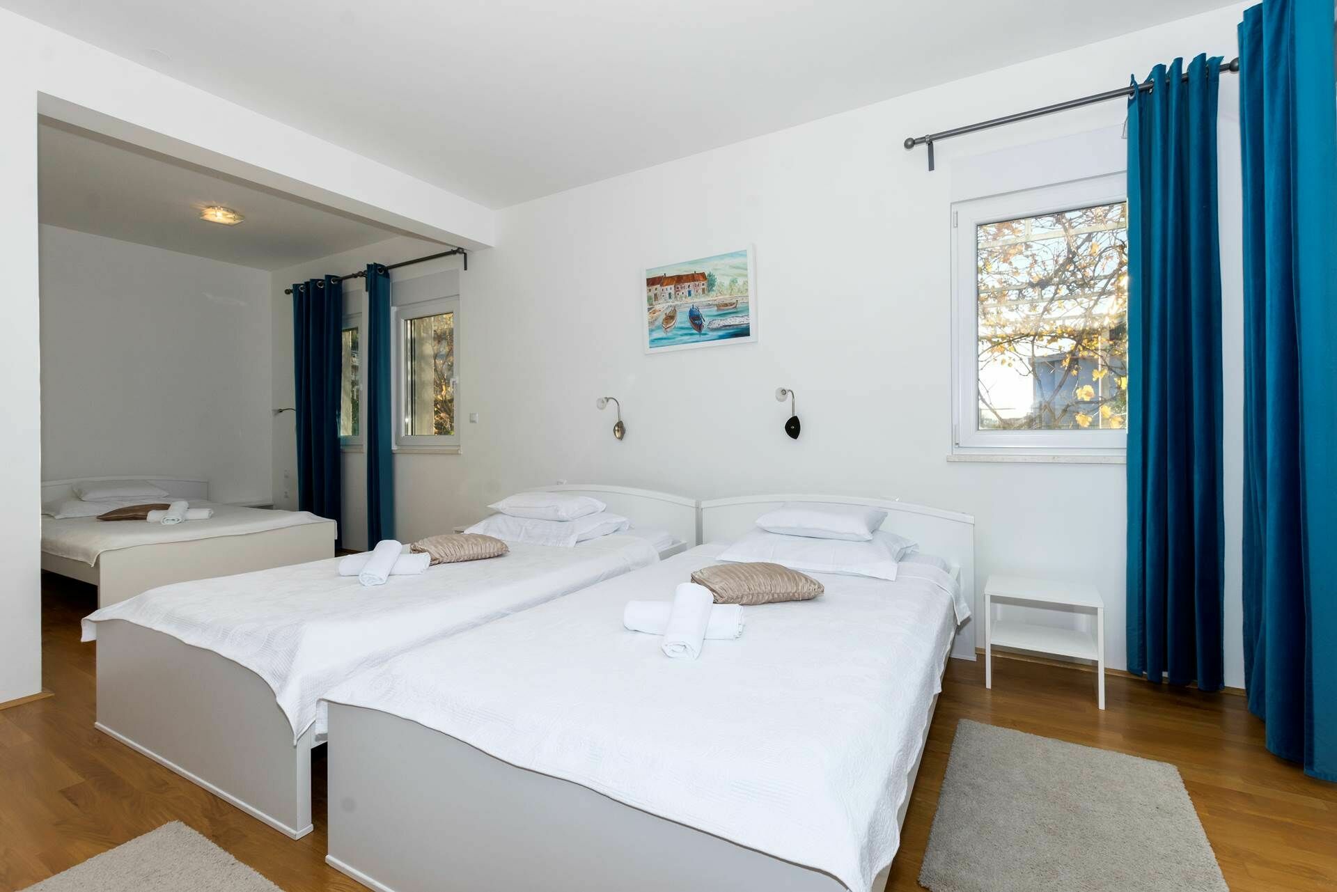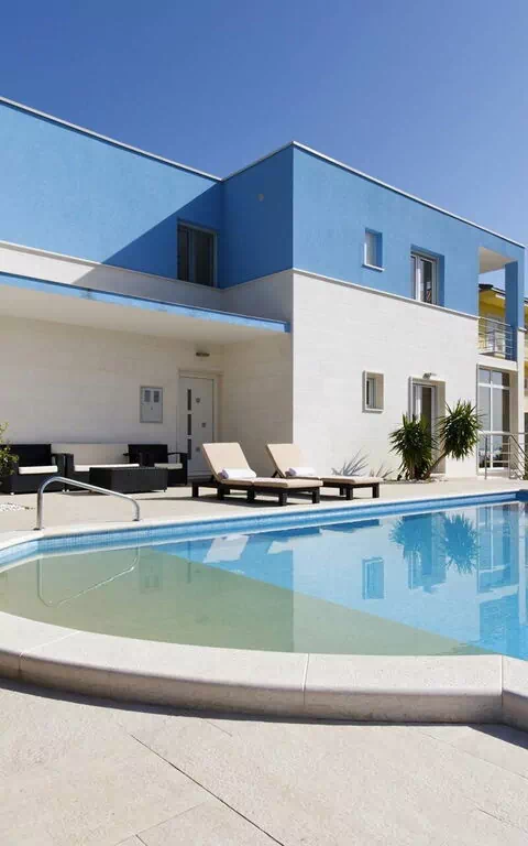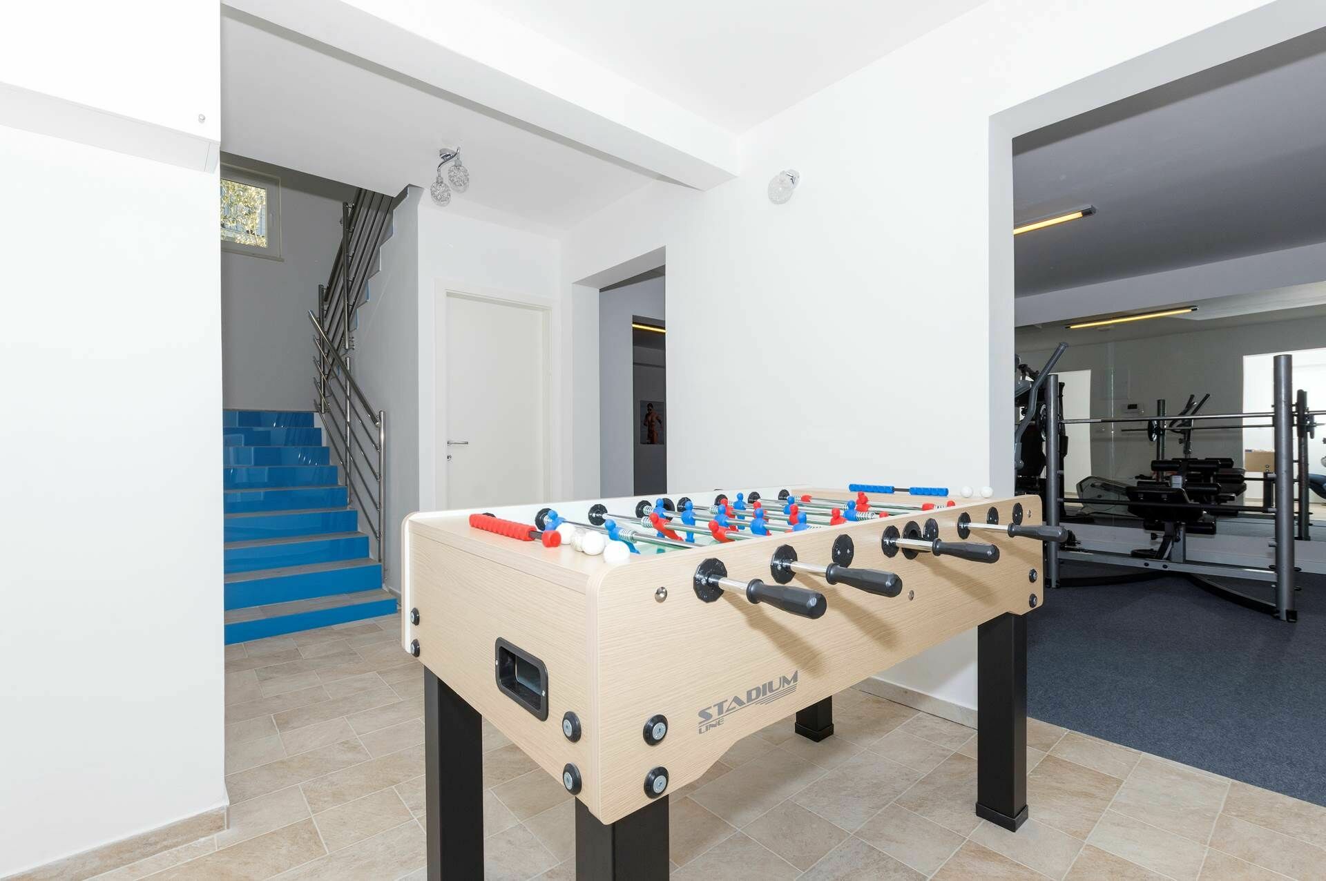 Hvis du ønsker et eksklusivt feriehus for en drømmeferie i Kroatia, er Villa Mermaid et godt valg! Huset har 4 soverom og mange store fellesarealer, og kan lett huse 9 personer. Villaen er fordelt over to hovedetasjer, samt et lavere nivå, er elegant og smakfullt innredet, og tilbyr moderne fasilitetene som aircondition, Wi-Fi, to kjøkken og stuer fullt utstyrt med nye husholdningsapparater. Det også et treningsstudio, et lekeområde med bordtennis og et biljardbord innendørs.