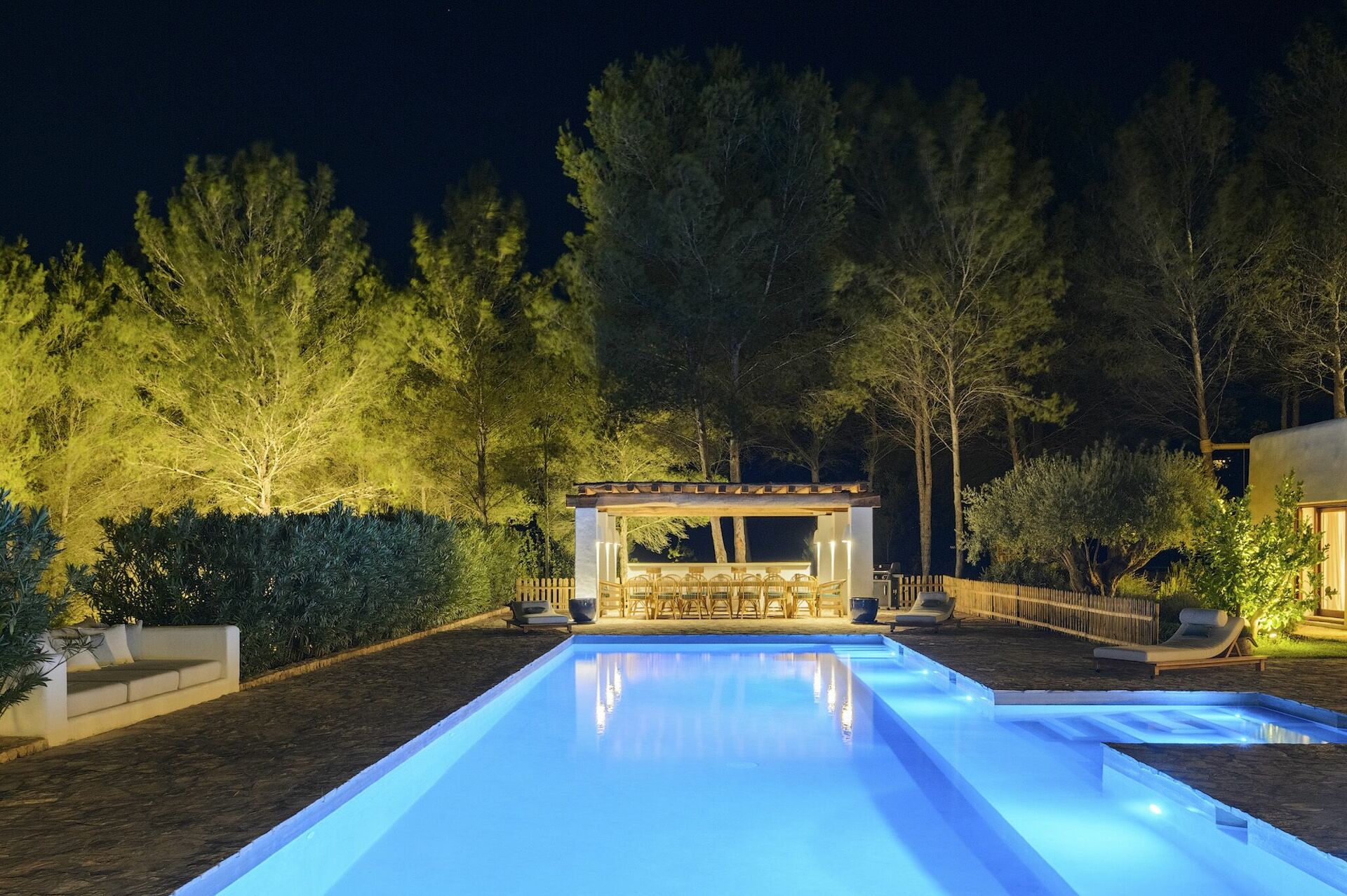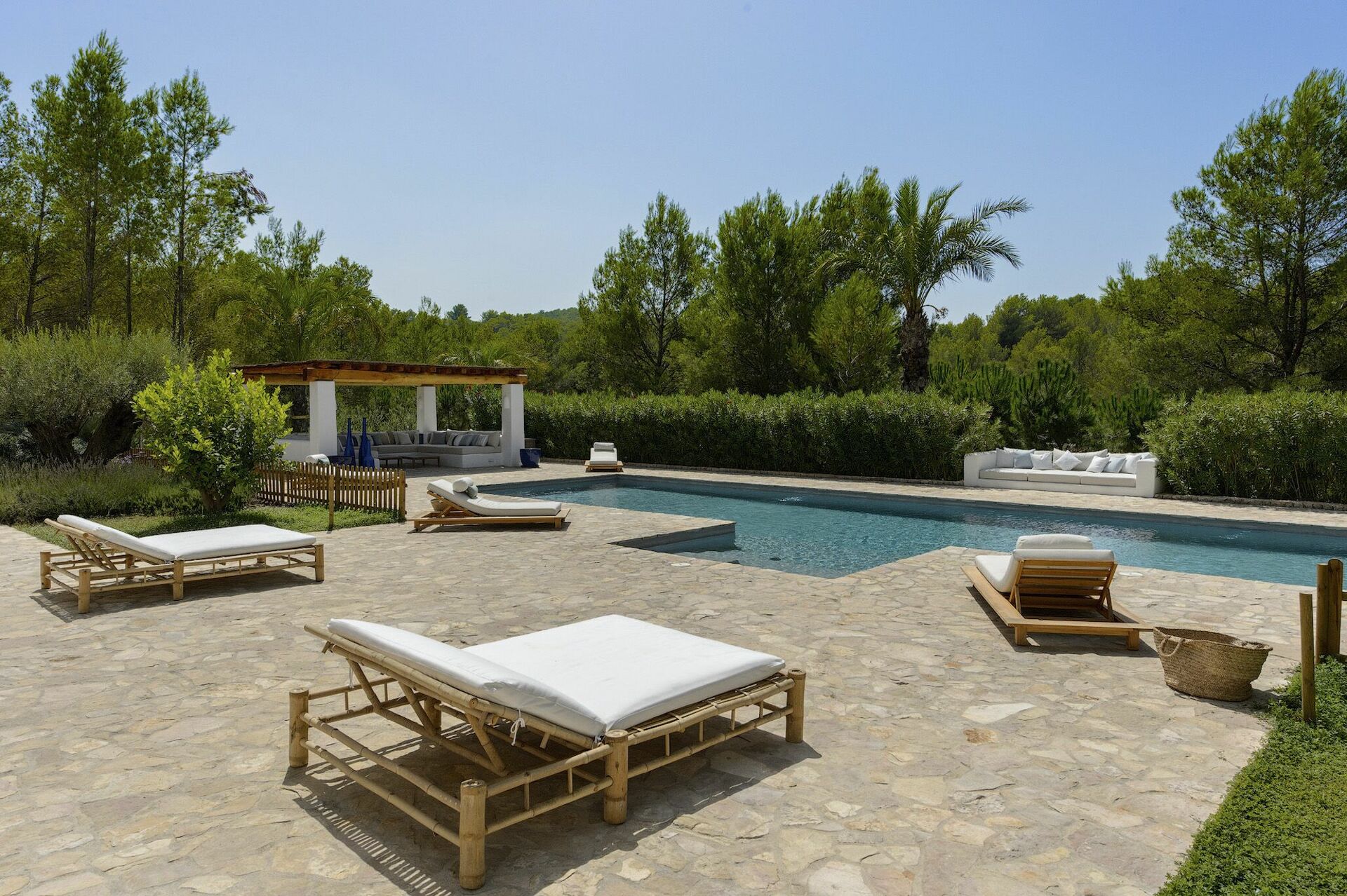 Luksusvilla i innlandet på Ibiza i Spania. Feriehuset har privat basseng og er perfekt for en avslappende ferie langt unna stress og mas fra andre turister.