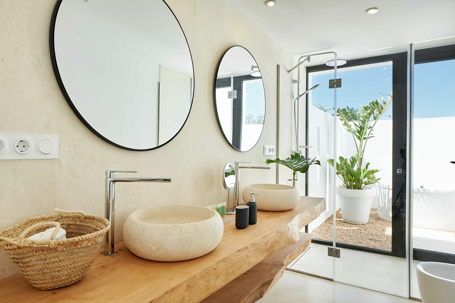 Første etasje: stue, spisestue, fullt utstyrt kjøkken. To doble soverom med felles bad; 2 soverom (ett med dobbeltseng, ett med 2 enkeltsenger) med eget bad med dusj og utendørs boblebad